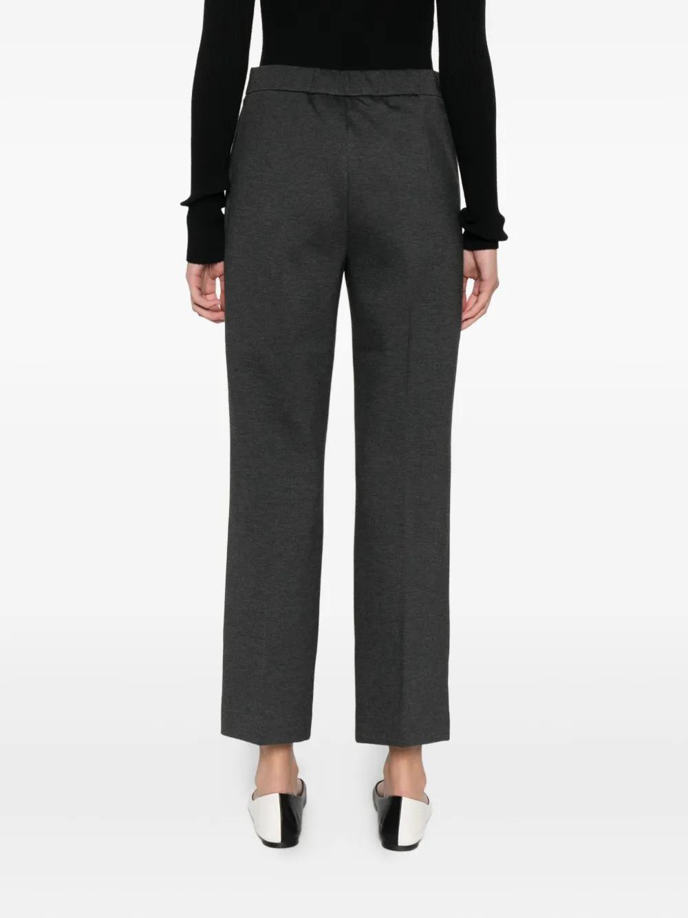black virgin wool textured finish concealed front fastening belted waist pleat detailing pressed crease two rear welt pockets straight leg turn-up hem