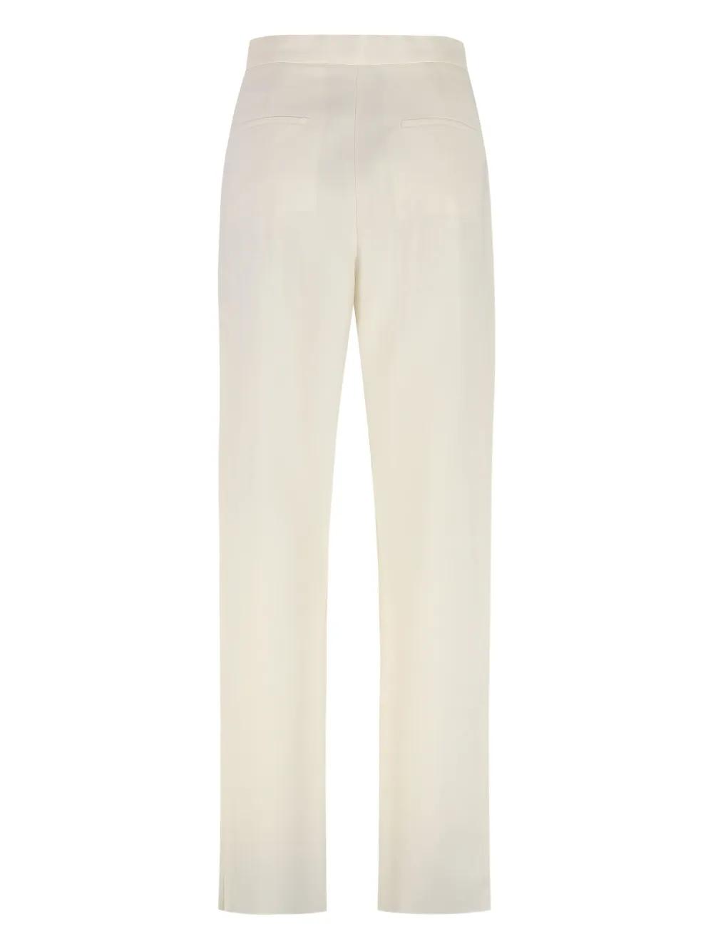white pleated front two welt pockets straight leg mid-rise waist cotton fabric