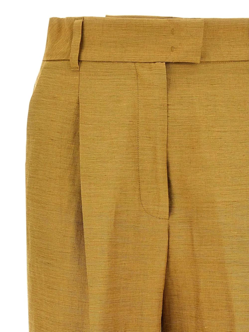 gold-tone concealed front fastening belt loops two side inset pockets two rear patch pockets