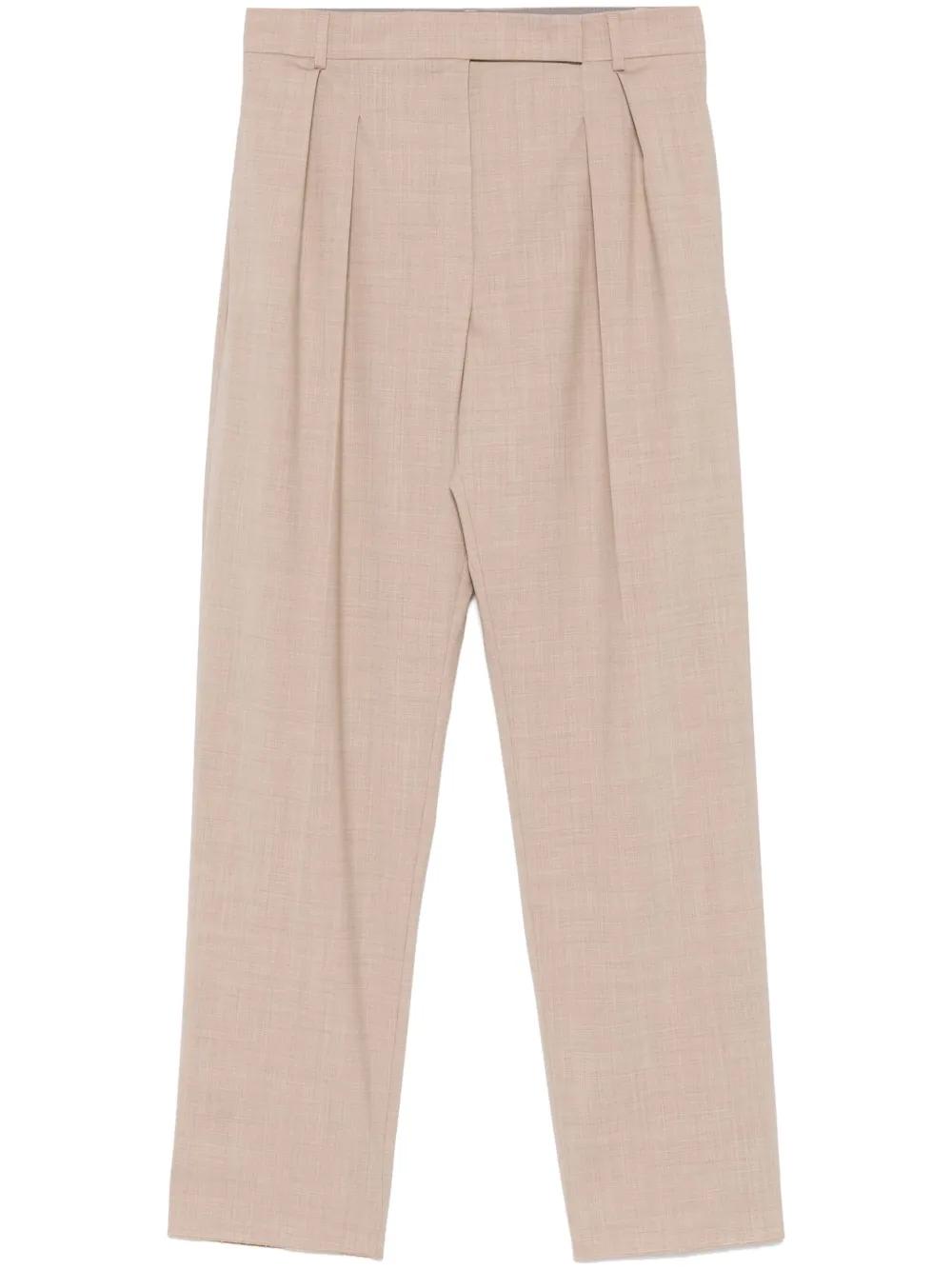 light brown concealed front fastening belt loops two side inset pockets two rear button-fastening jetted pockets