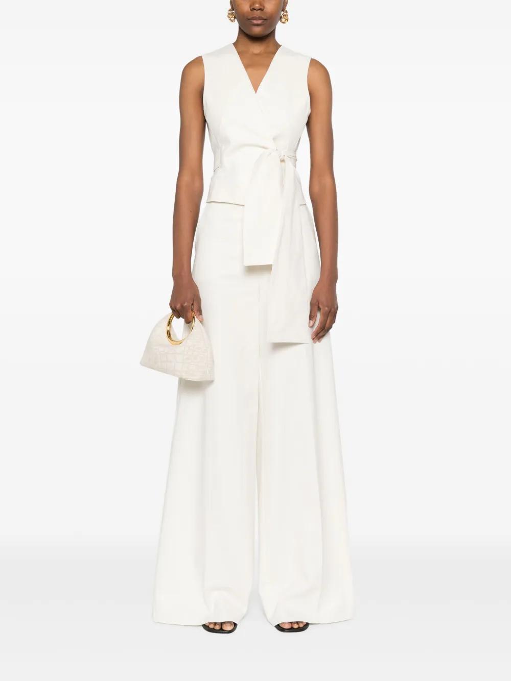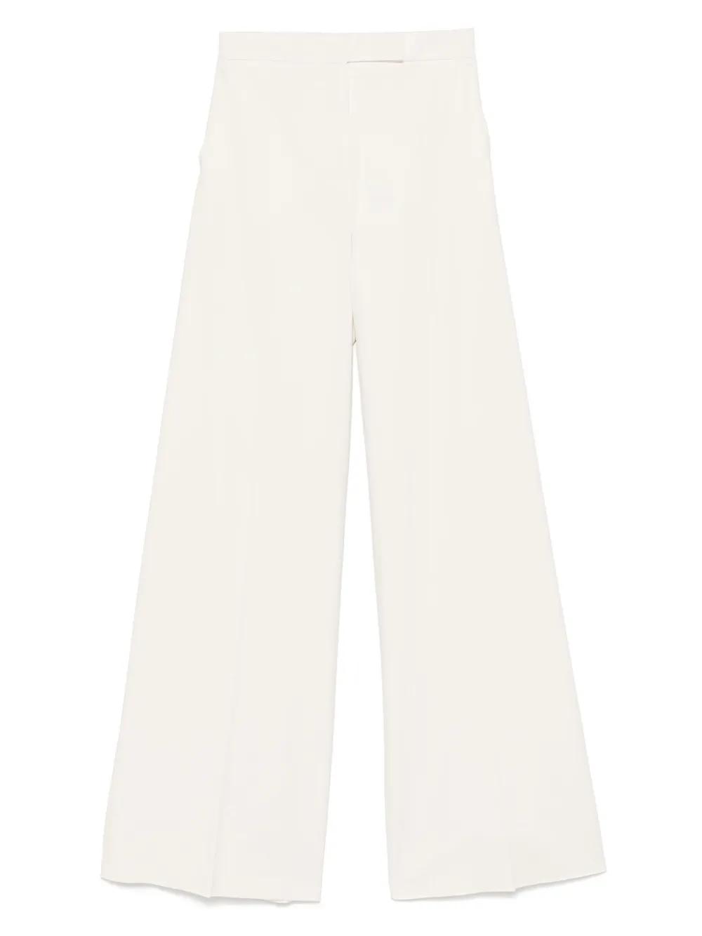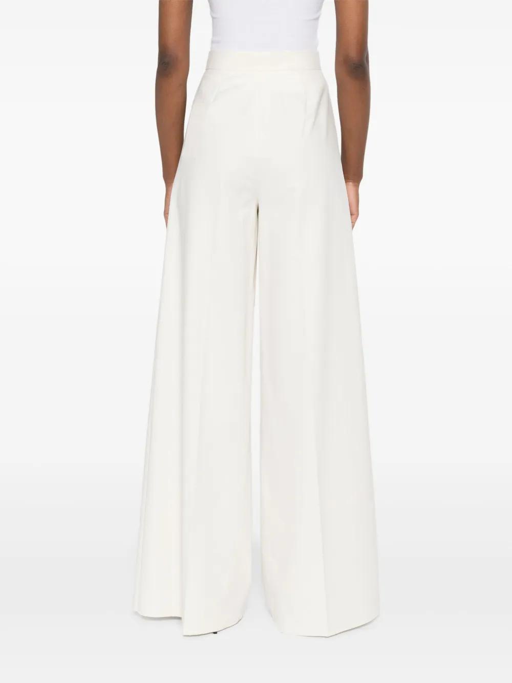 white hook and zip fly fastening two diagonal pockets to the sides pressed crease dart detailing