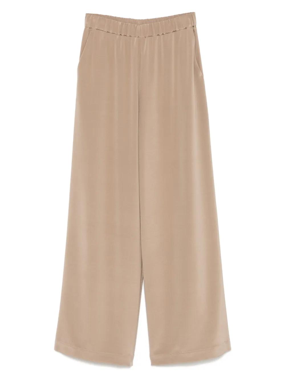 light beige concealed side hook and zip fastening two diagonal pockets to the sides rear button-fastening pocket belt loops