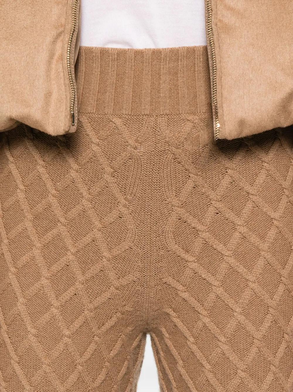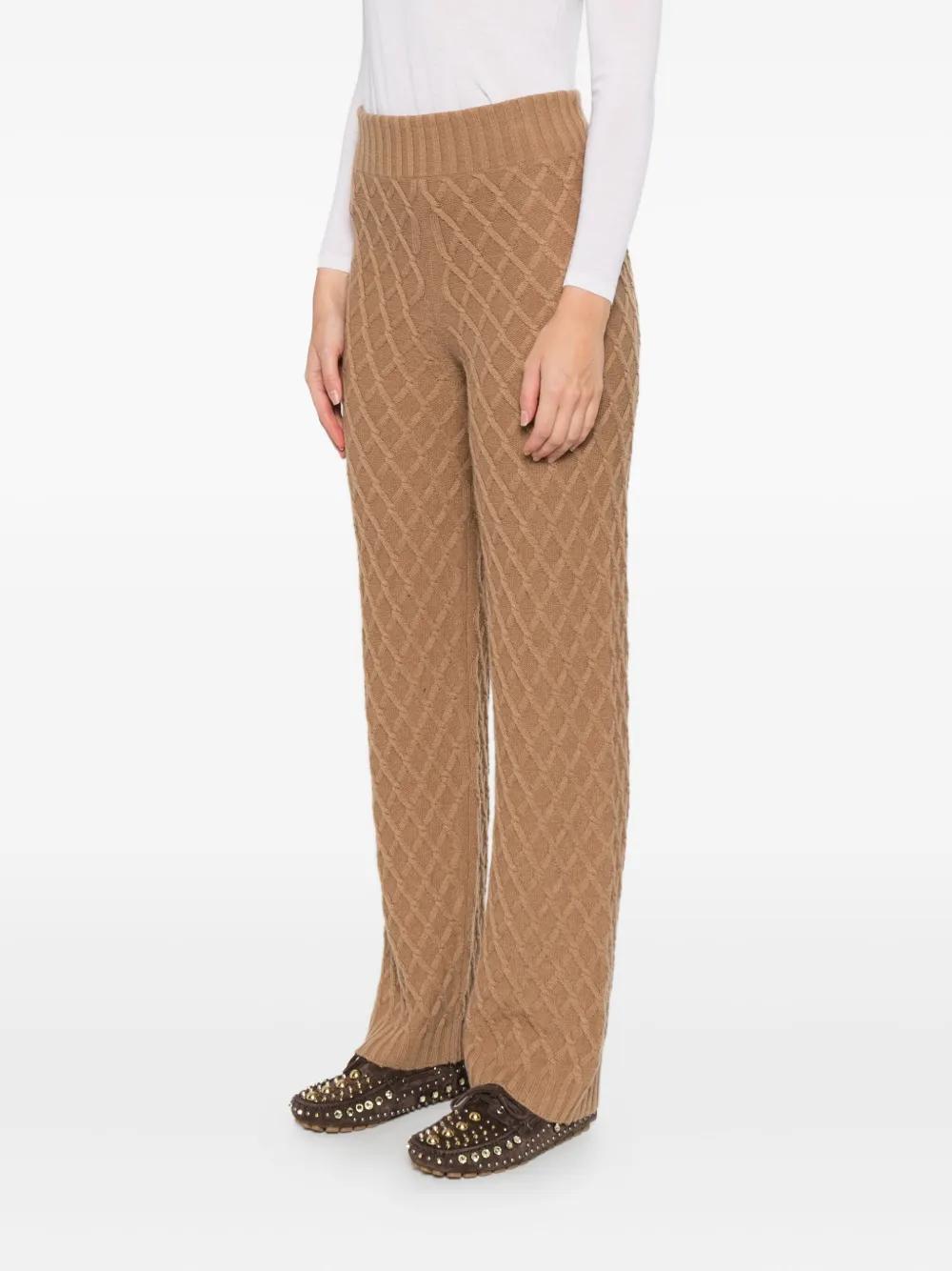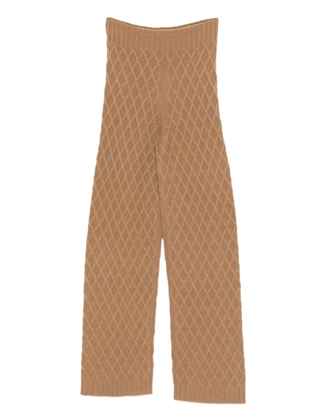 camel brown knitted construction diamond pattern ribbed waistband straight leg
