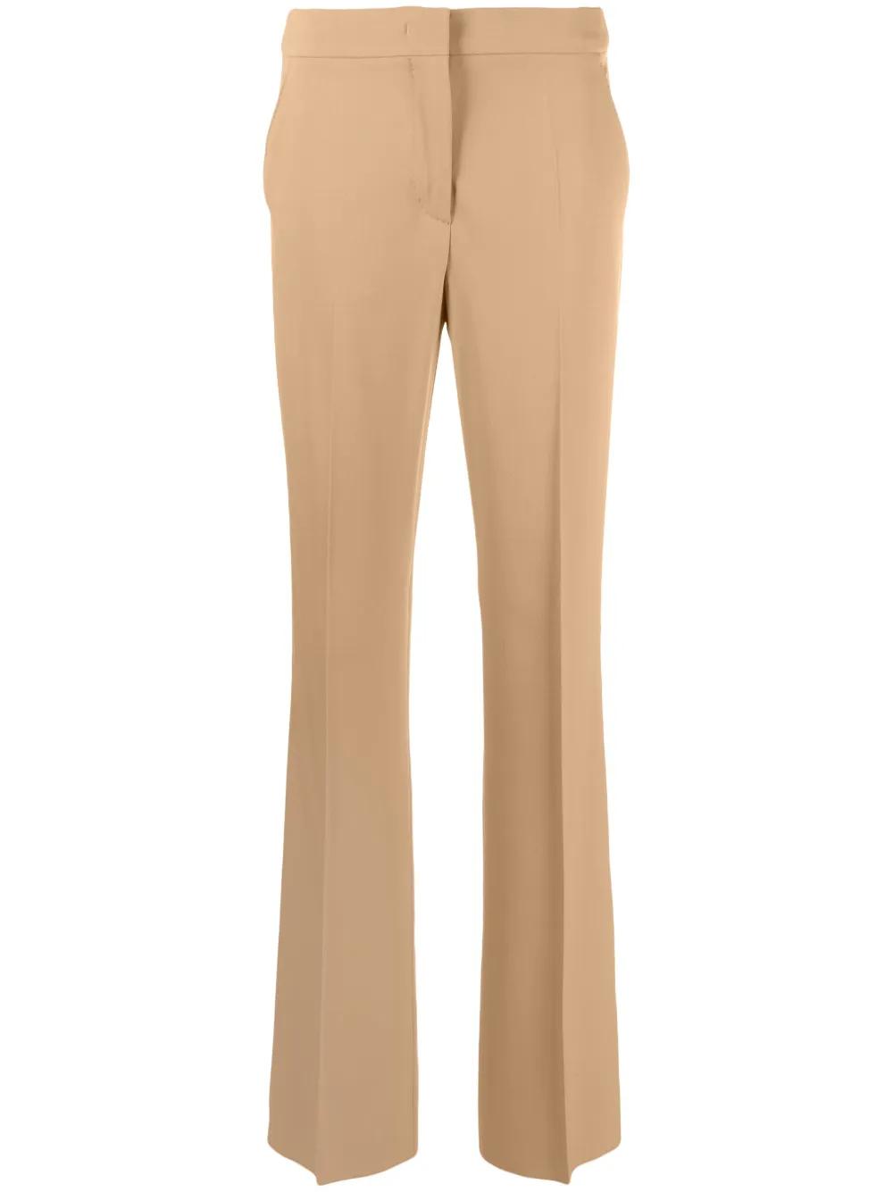 chamoisee virgin wool blend high-waisted pressed crease belt loops front hook and eye fastening two side inset pockets