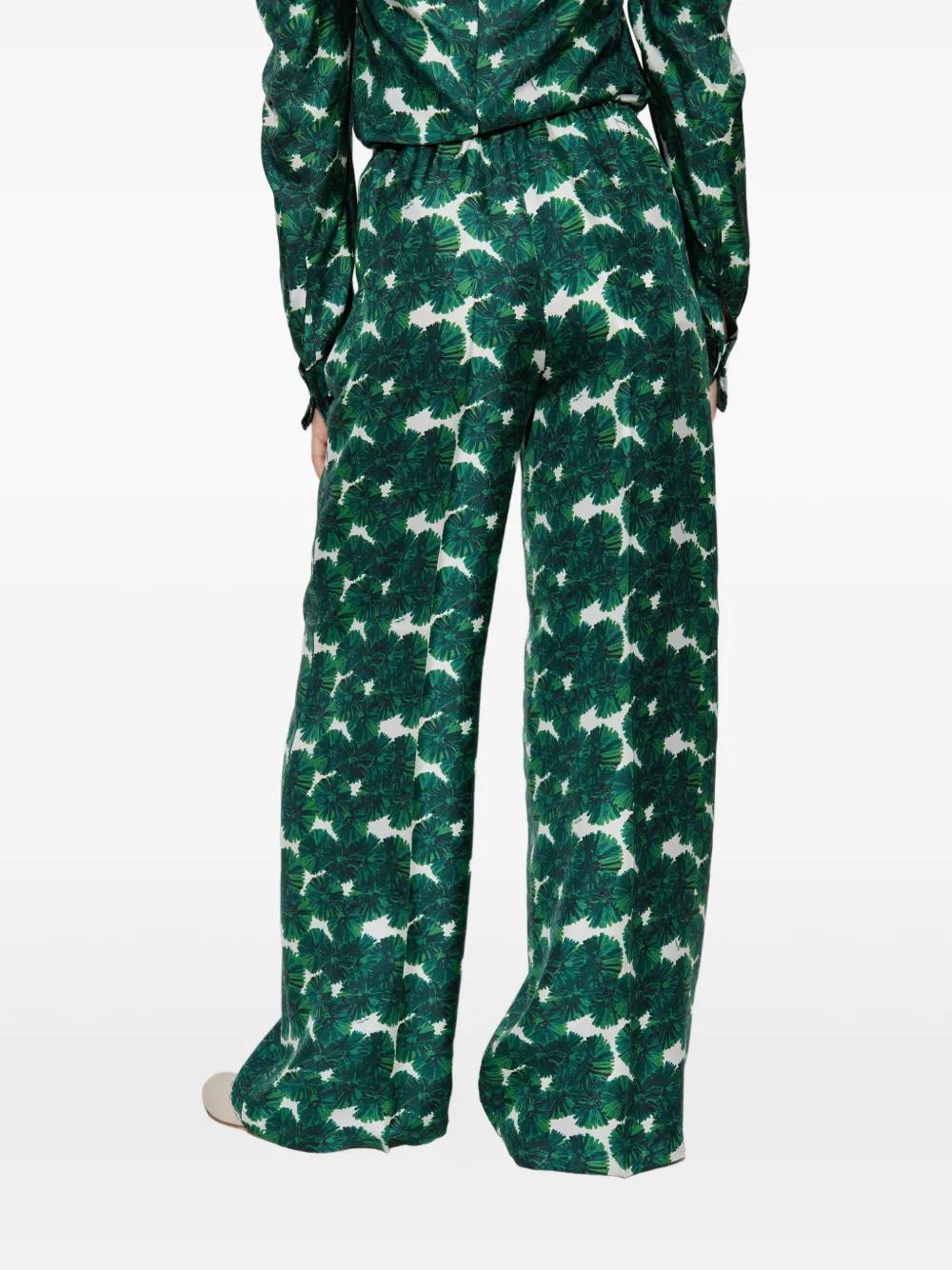 green leaf print elasticated waistband two side pockets loose-fitting silhouette
