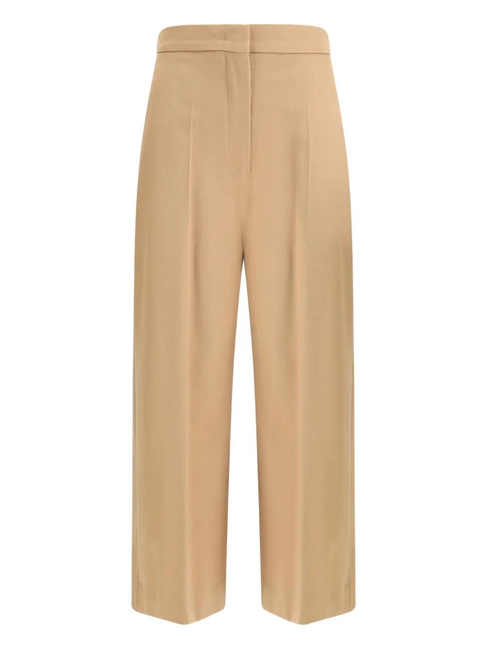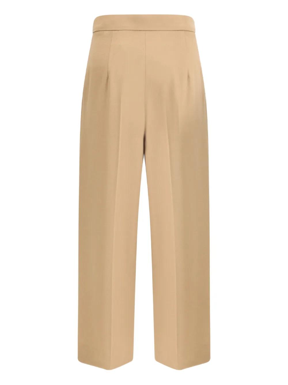 light beige concealed front button, hook and zip fastening two side slash pockets two rear button-fastening pockets pleat detailing