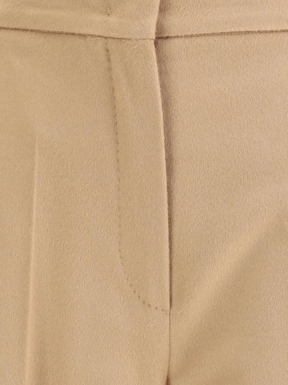 brown wool cashmere fabric elasticised waistband straight hem ribbed texture