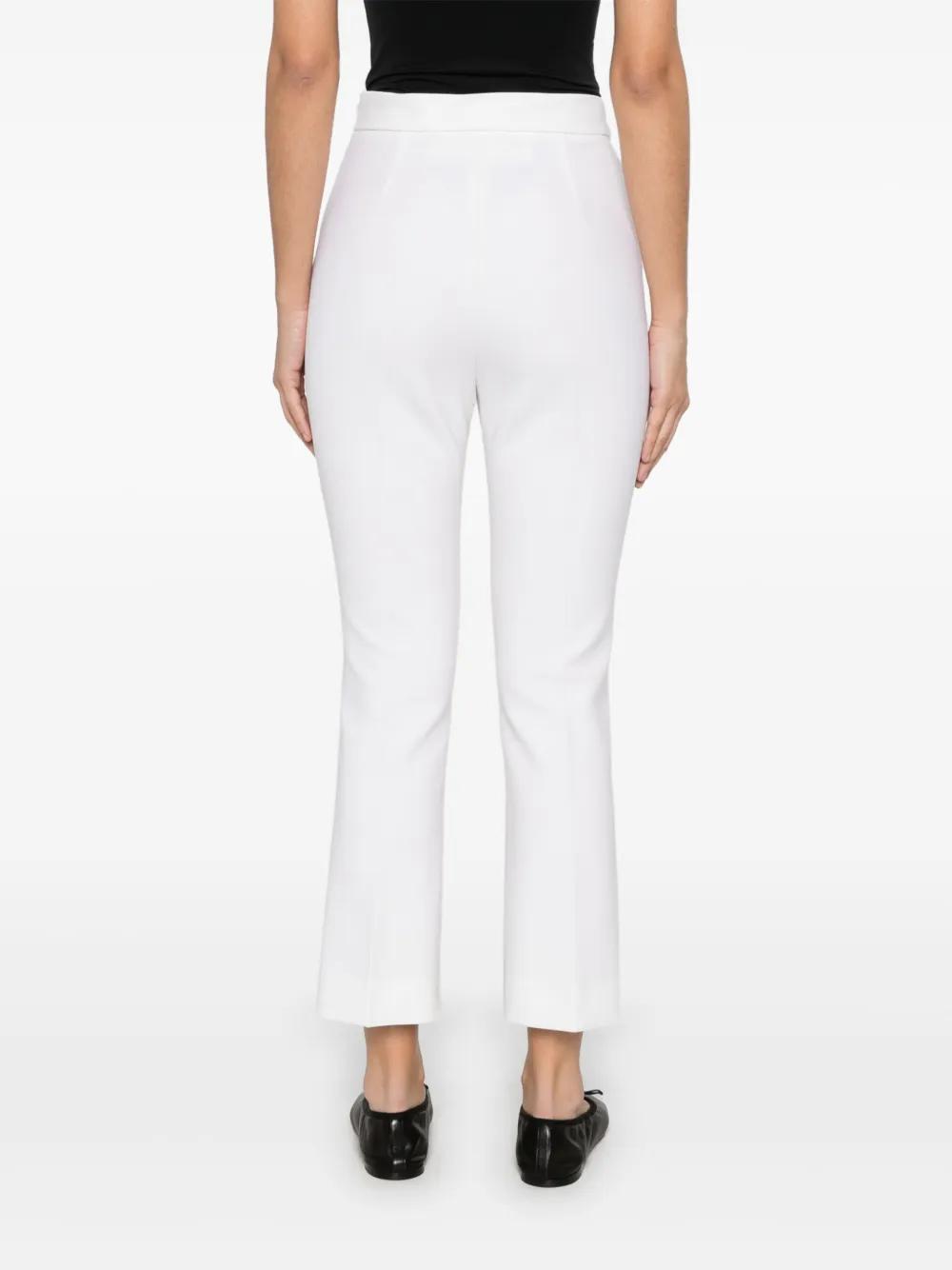 white concealed side hook and zip fastening slip pockets to the sides dart detailing pressed crease
