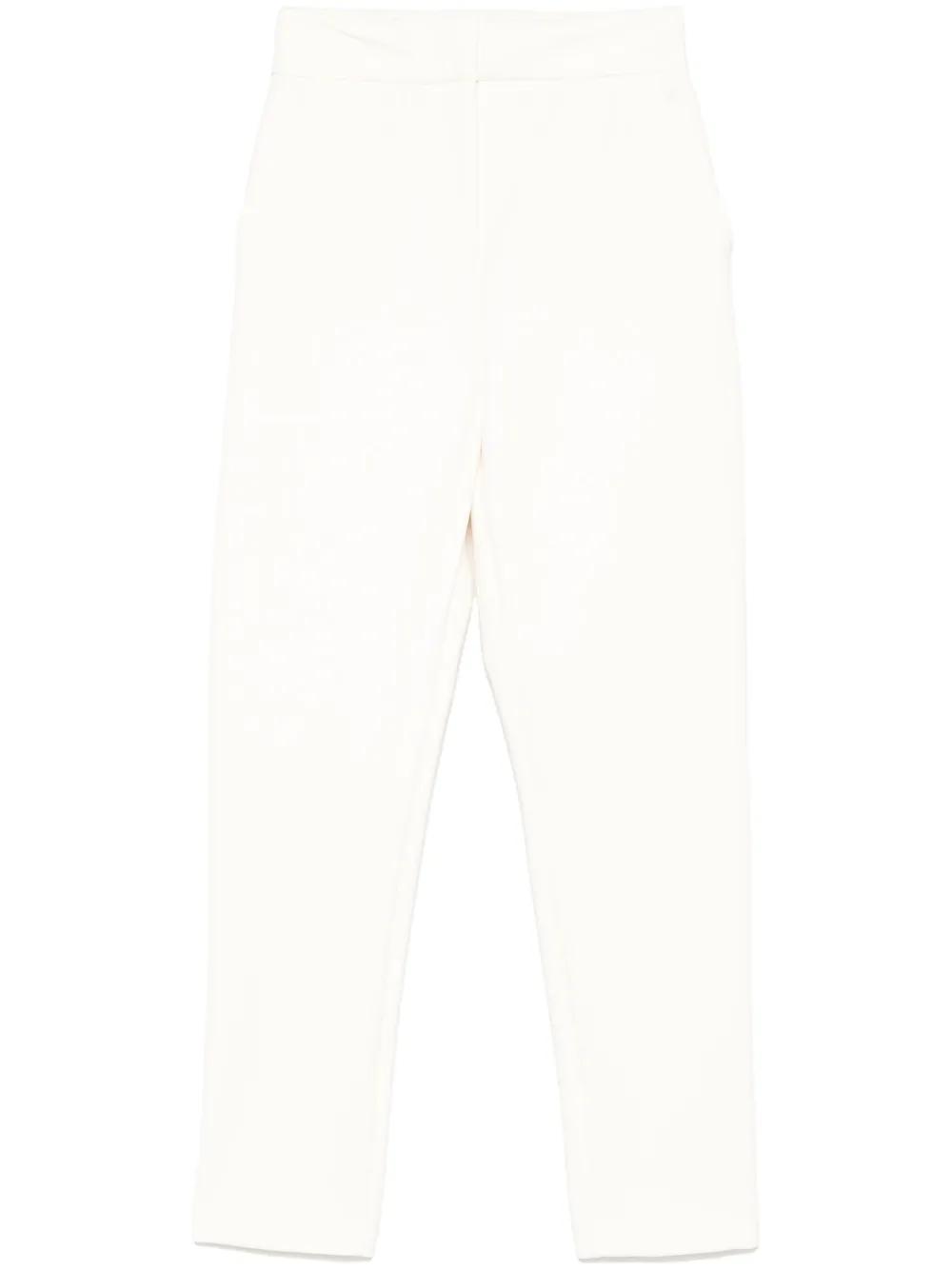 white concealed side zip fastening two diagonal pockets to the sides two rear welt pockets high-waisted