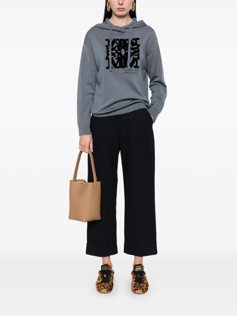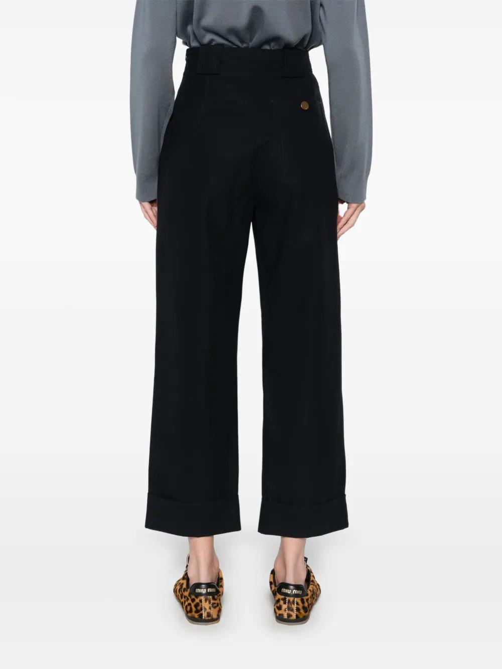 navy blue concealed side hook and zip fastening two diagonal pockets to the sides rear patch pocket