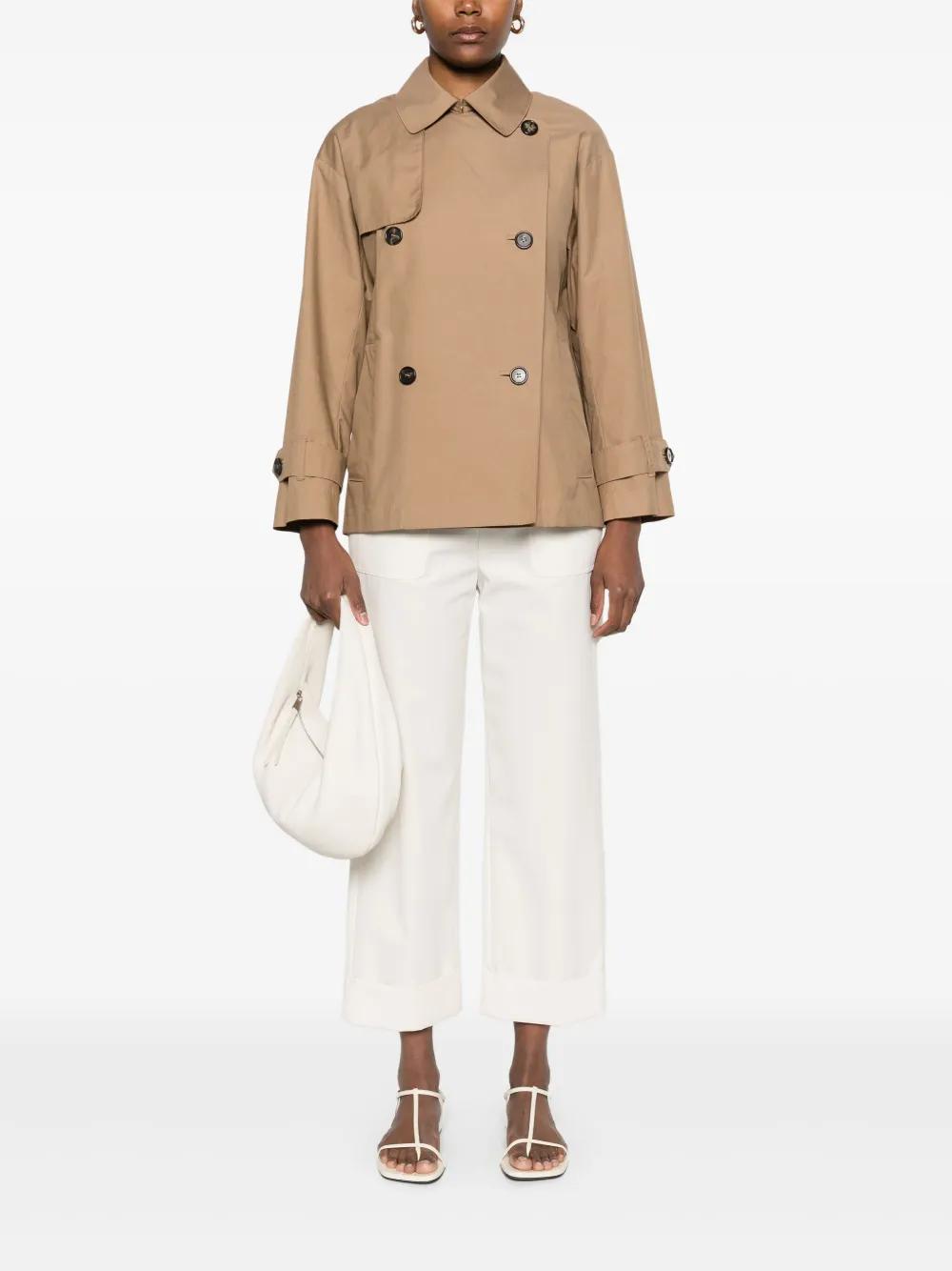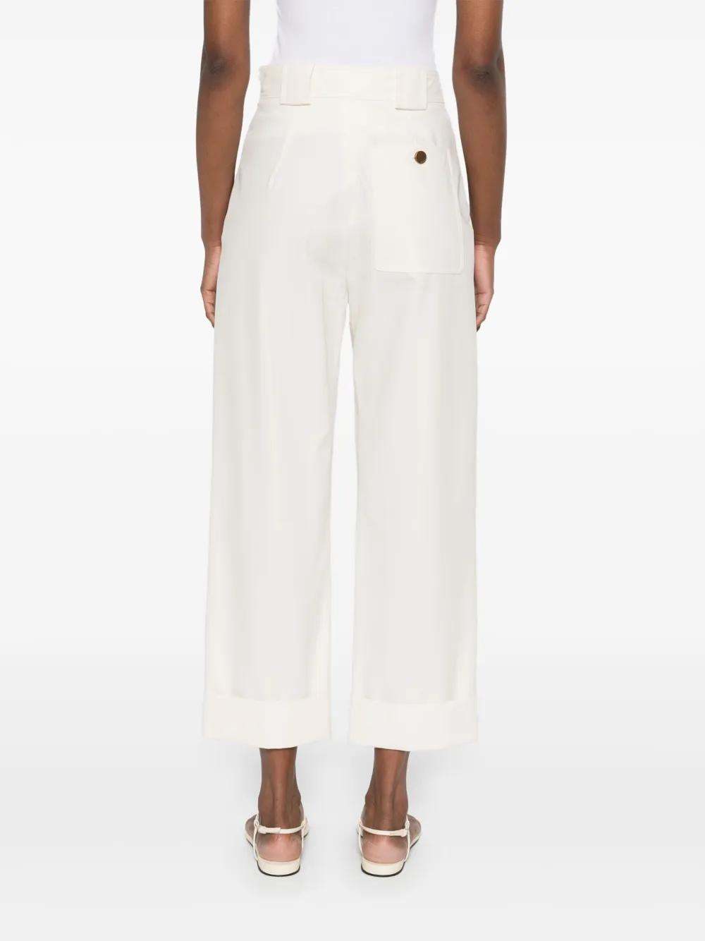 light beige concealed side hook and zip fastening two diagonal pockets to the sides rear button-fastening pocket belt loops
