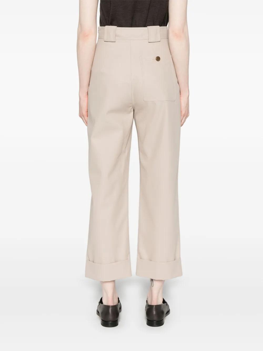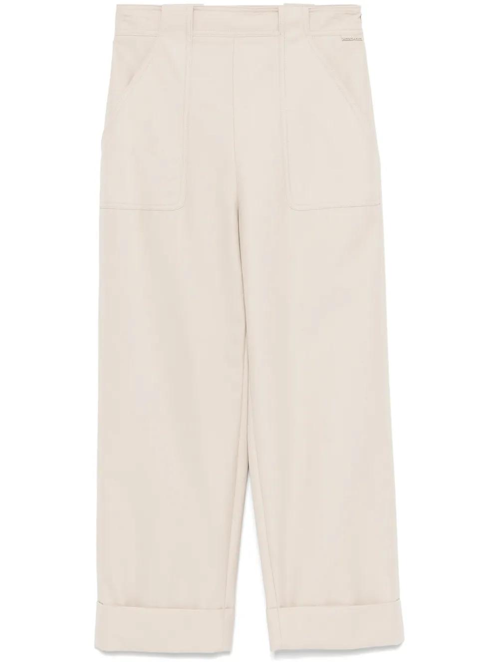sand beige concealed side zip fastening belt loops two side slash pockets rear patch pocket