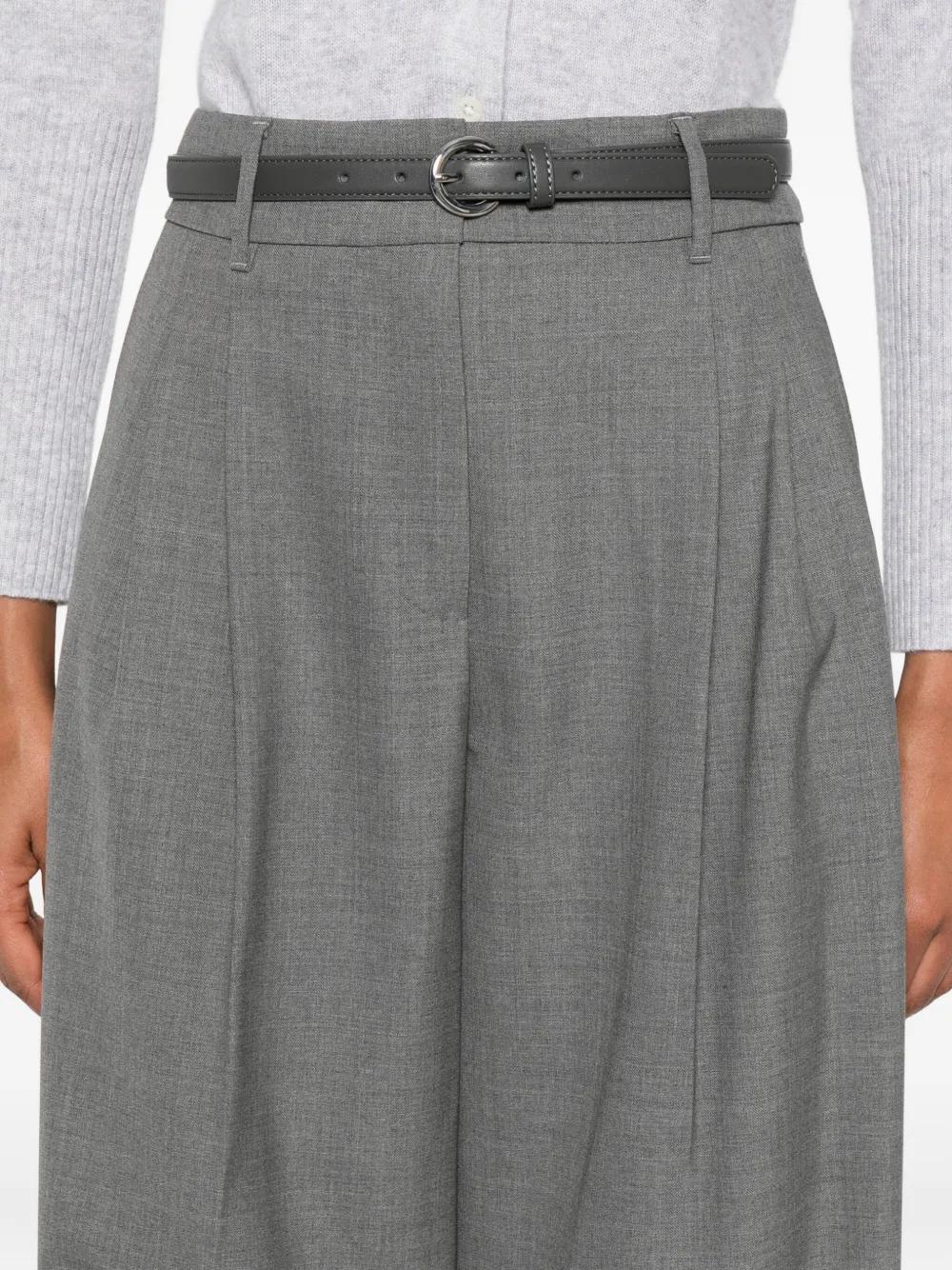 grey pleated front belt embellishment front pockets wool fabric