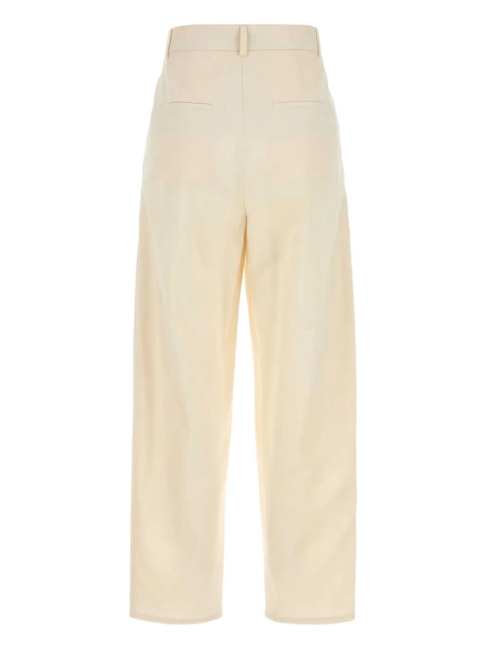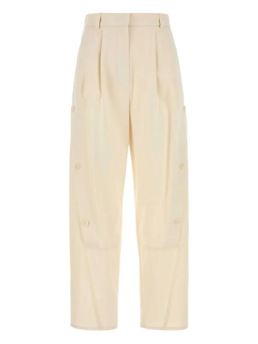 white pleated front side pockets button detailing high waist