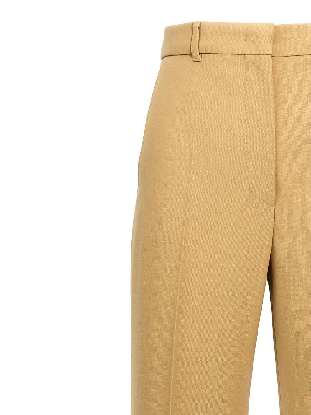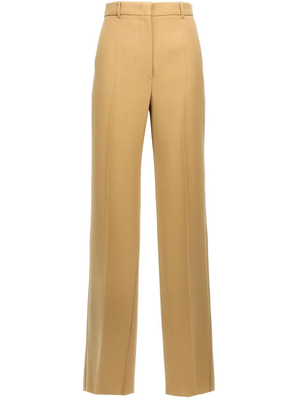 beige concealed front button, hook and zip fastening belt loops two side slit pockets