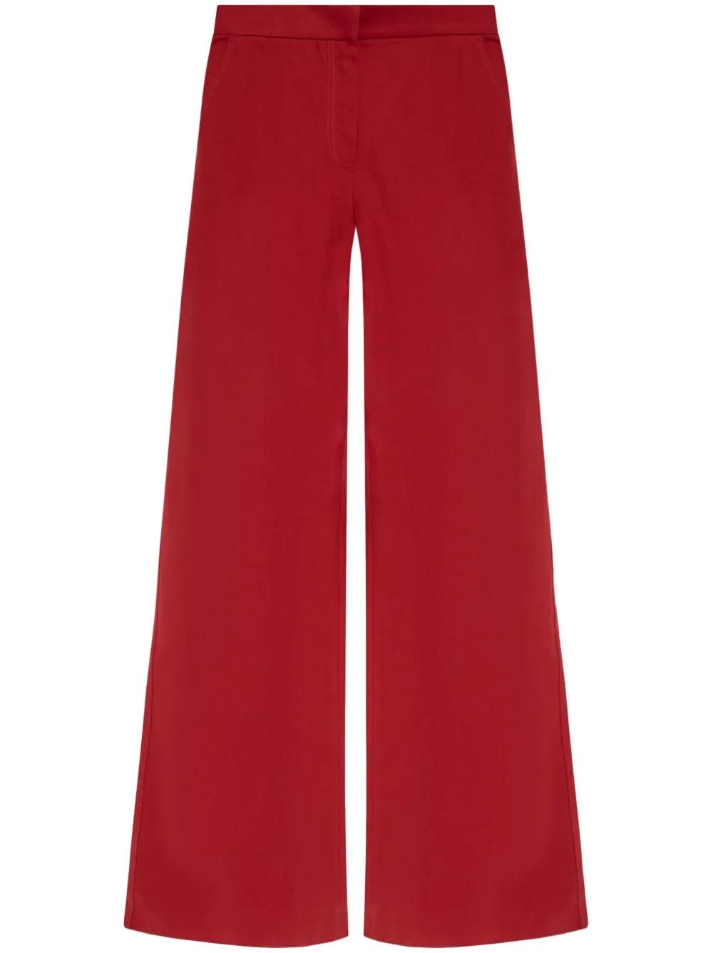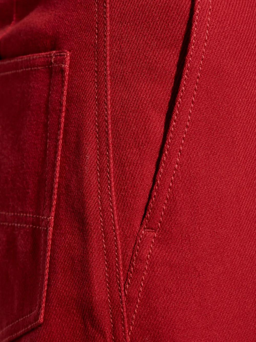 cardinal red concealed front fastening two side slit pockets two rear patch pockets