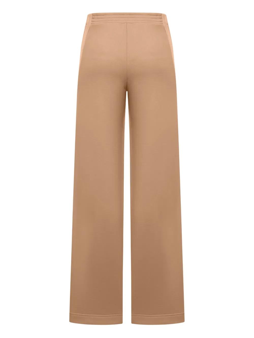 black crepe de chine plissé effect high-waisted side stripe detailing two side inset pockets full-length lettuce hem wide leg concealed side hook and zip fastening