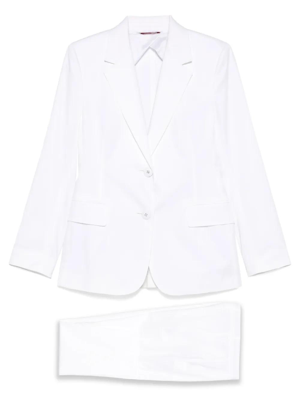 white front button fastening concealed front fastening two front flap pockets buttoned cuffs