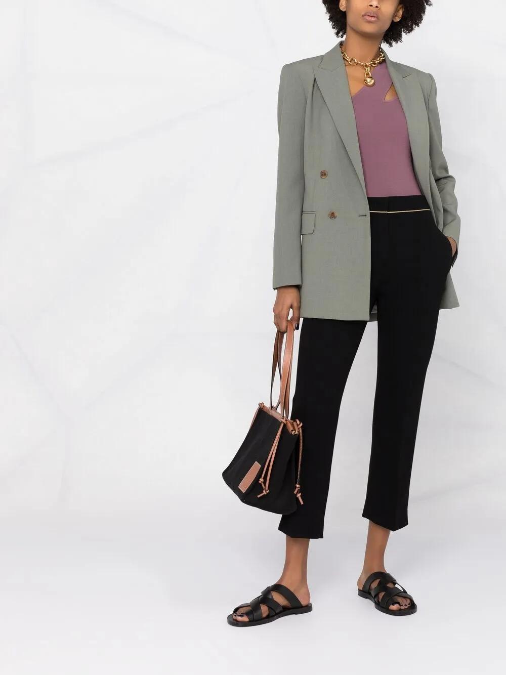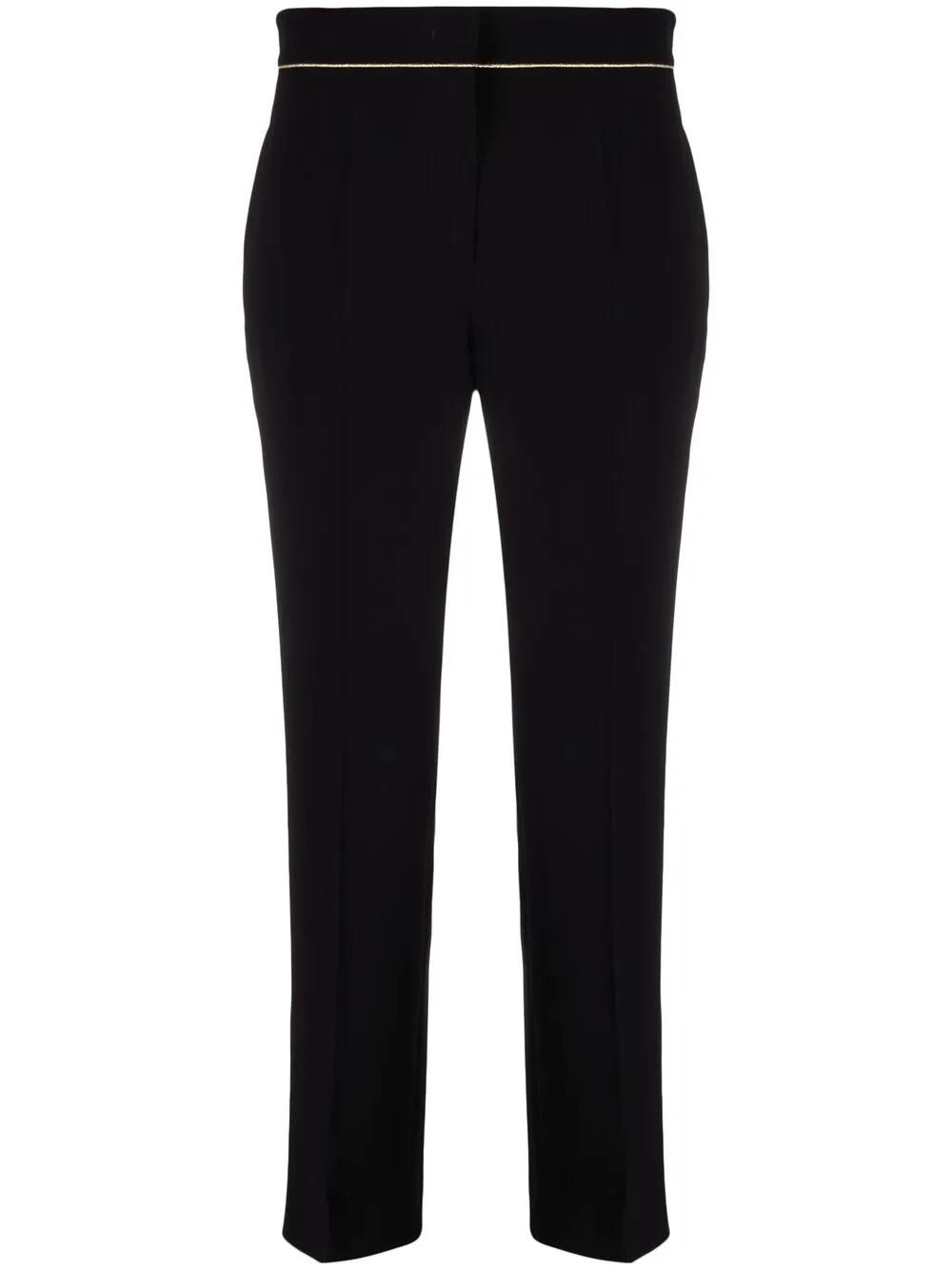 black contrasting trim hook and zip fly fastening high waist two side inset pockets straight leg