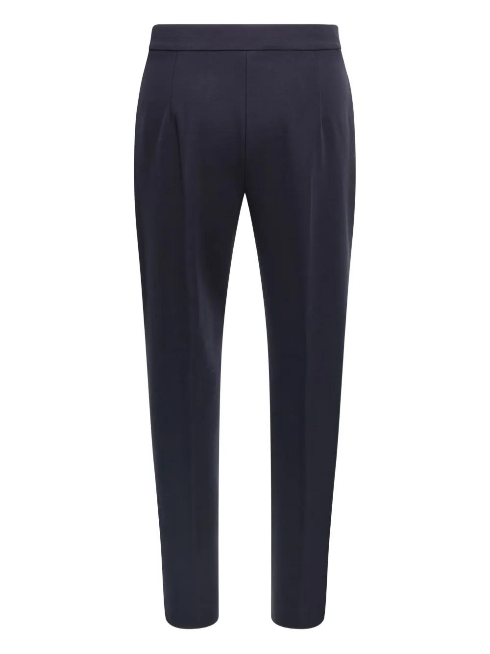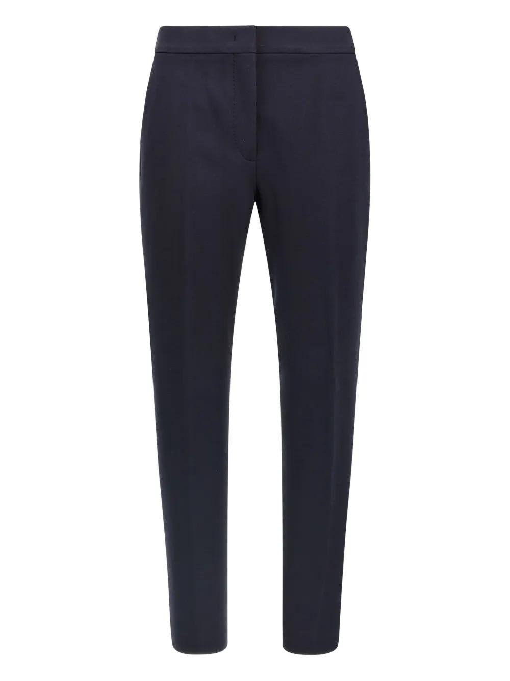 black belt loops flared leg concealed fastening tonal stitching pressed crease
