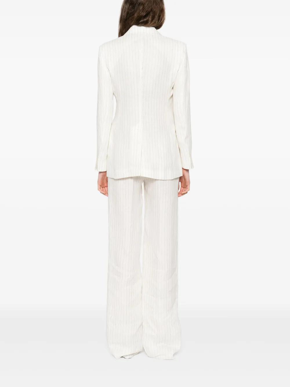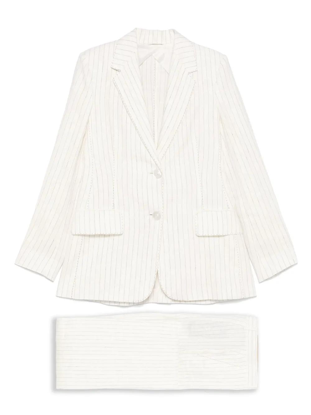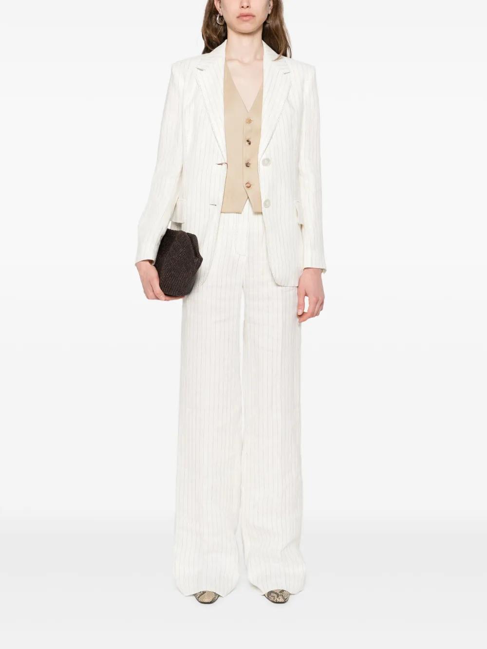 white front button fastening two front jetted pockets notched lapels long sleeves