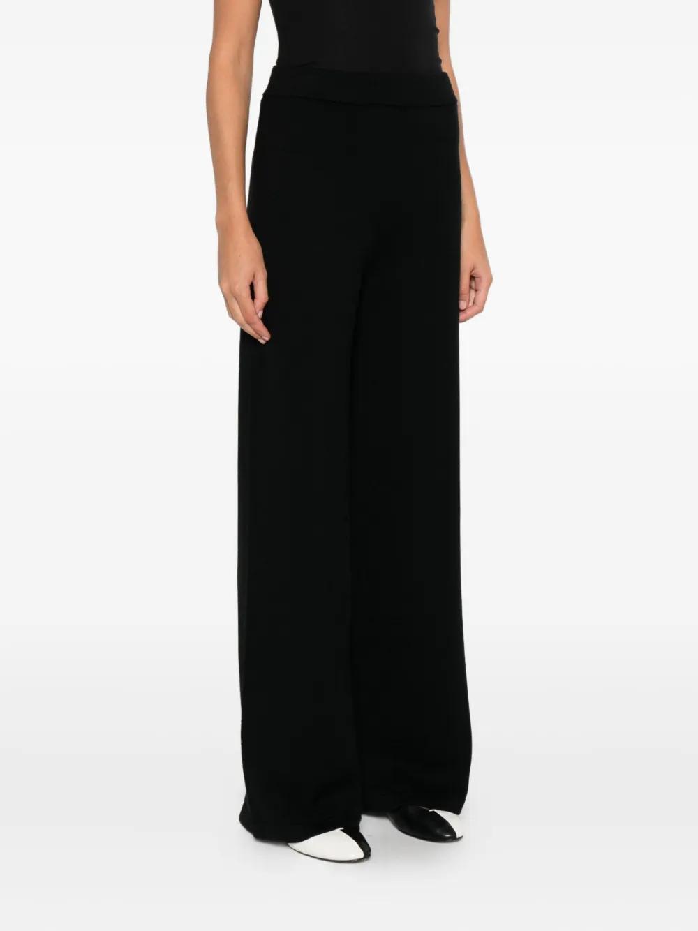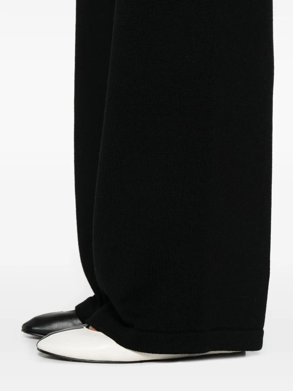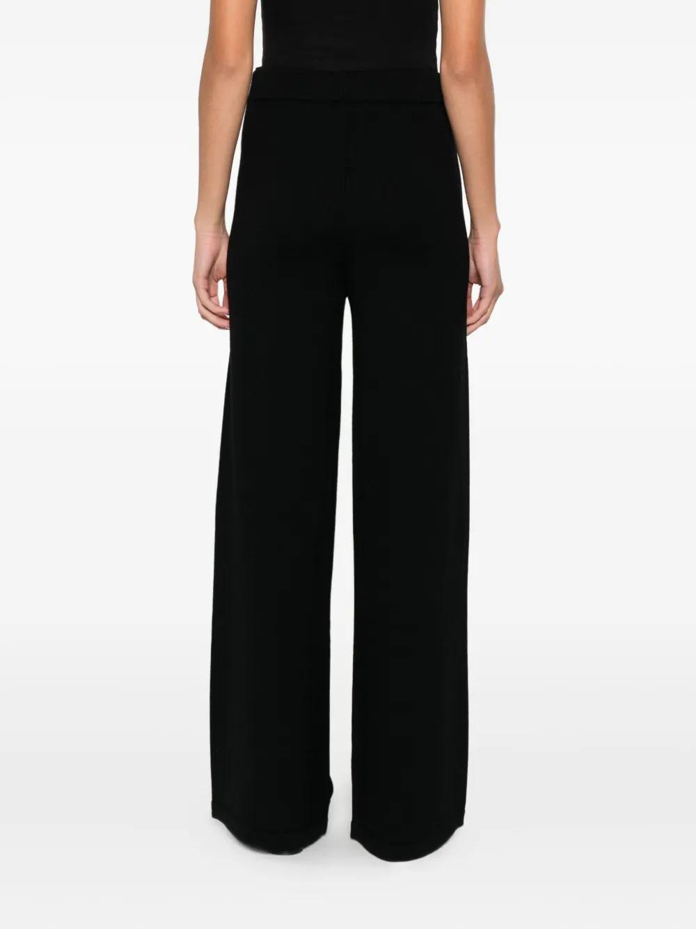 black virgin wool blend cumberband detail concealed side zip fastening high waist pressed crease two side slash pockets decorative button detailing to the back two rear welt pockets tailored design full-length straight leg