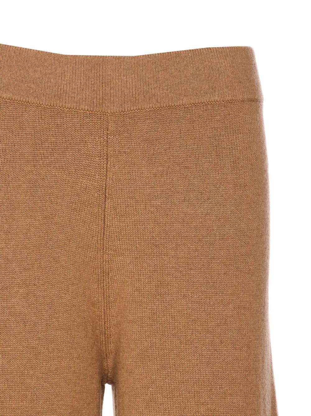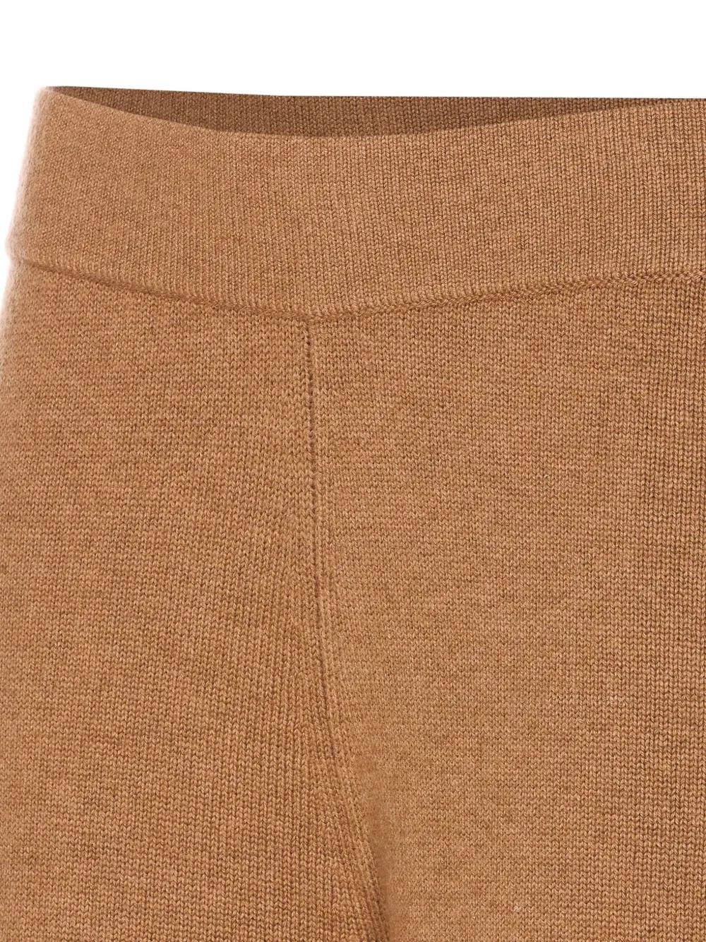 brown wool cashmere fabric elasticised waistband straight hem ribbed texture