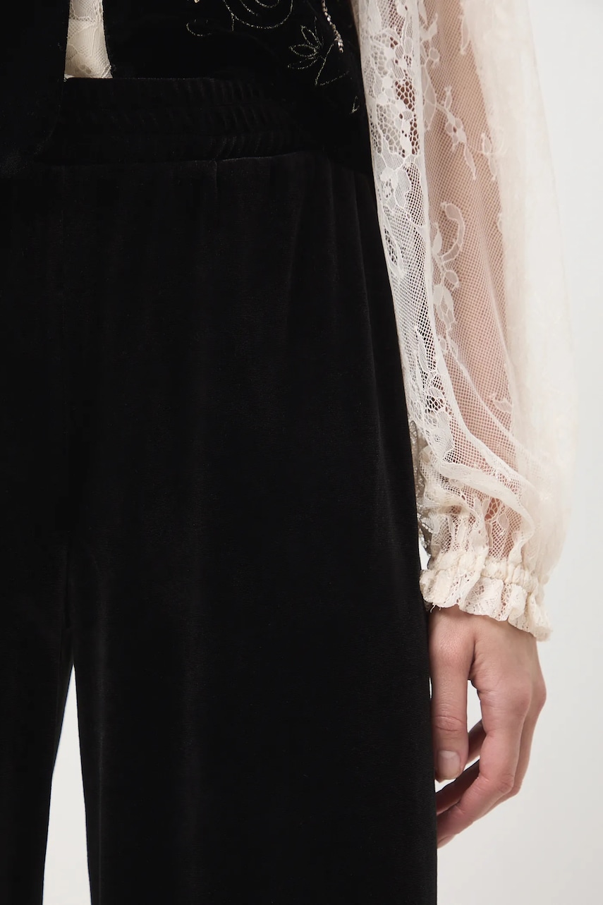 - Fason wide leg. - Regularna talia. - Elastyczna listwa w pasie. - Dwie wsuwane kieszenie boczne. - Szerokość w pasie (przed rozciągnięciem): 37 cm. - Szerokość w pasie (po rozciągnięciu): 45 cm. - Szerokość w biodrach: 52 cm. - Wysokość stanu: 27,5. - Szerokość nogawki na dole: 33 cm. - Długość wewnętrzna nogawki: 80 cm. - Wymiary podane dla rozmiaru: S.