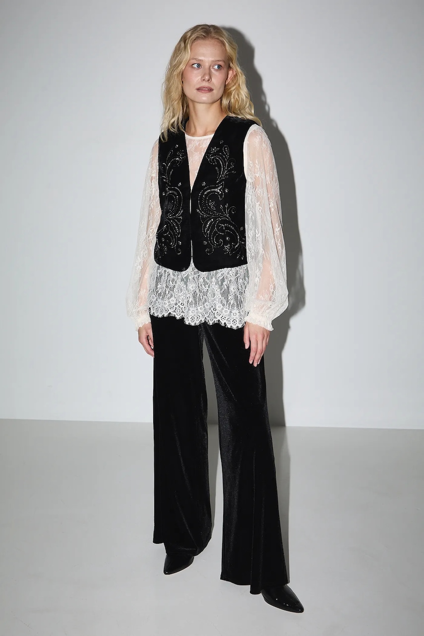 Medicine spodnie damskie kolor czarny szerokie medium waist
