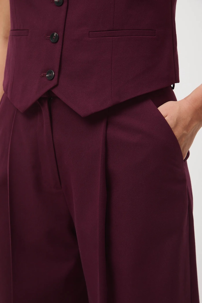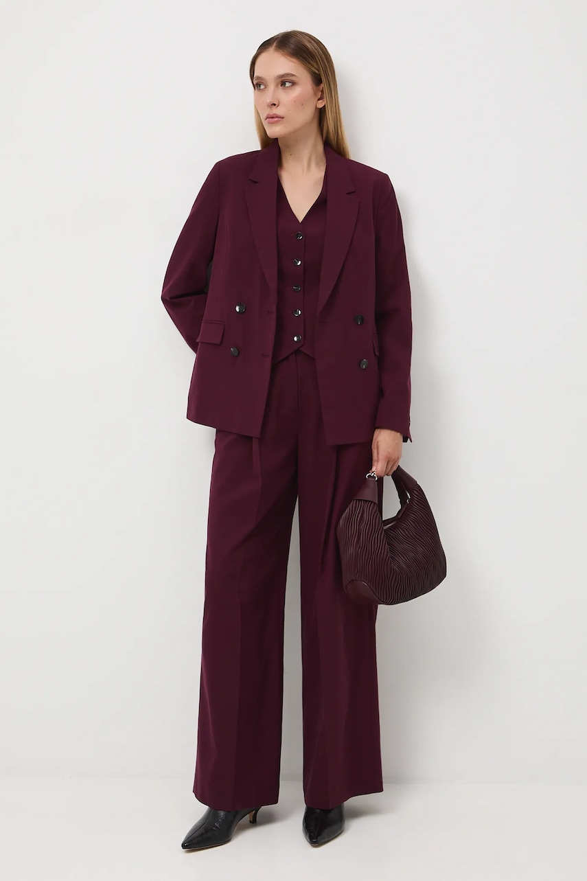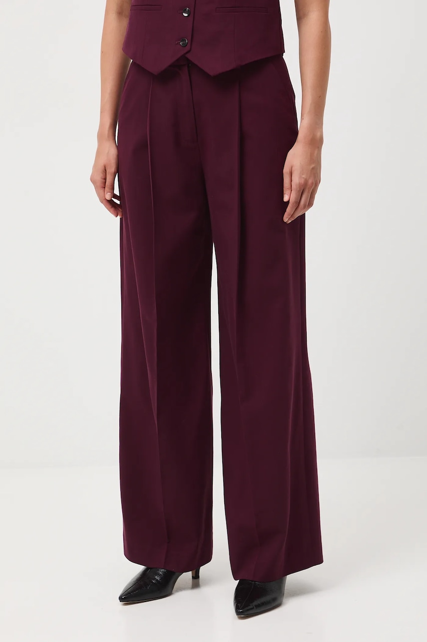 Medicine spodnie z domieszką wełny damskie kolor bordowy szerokie high waist