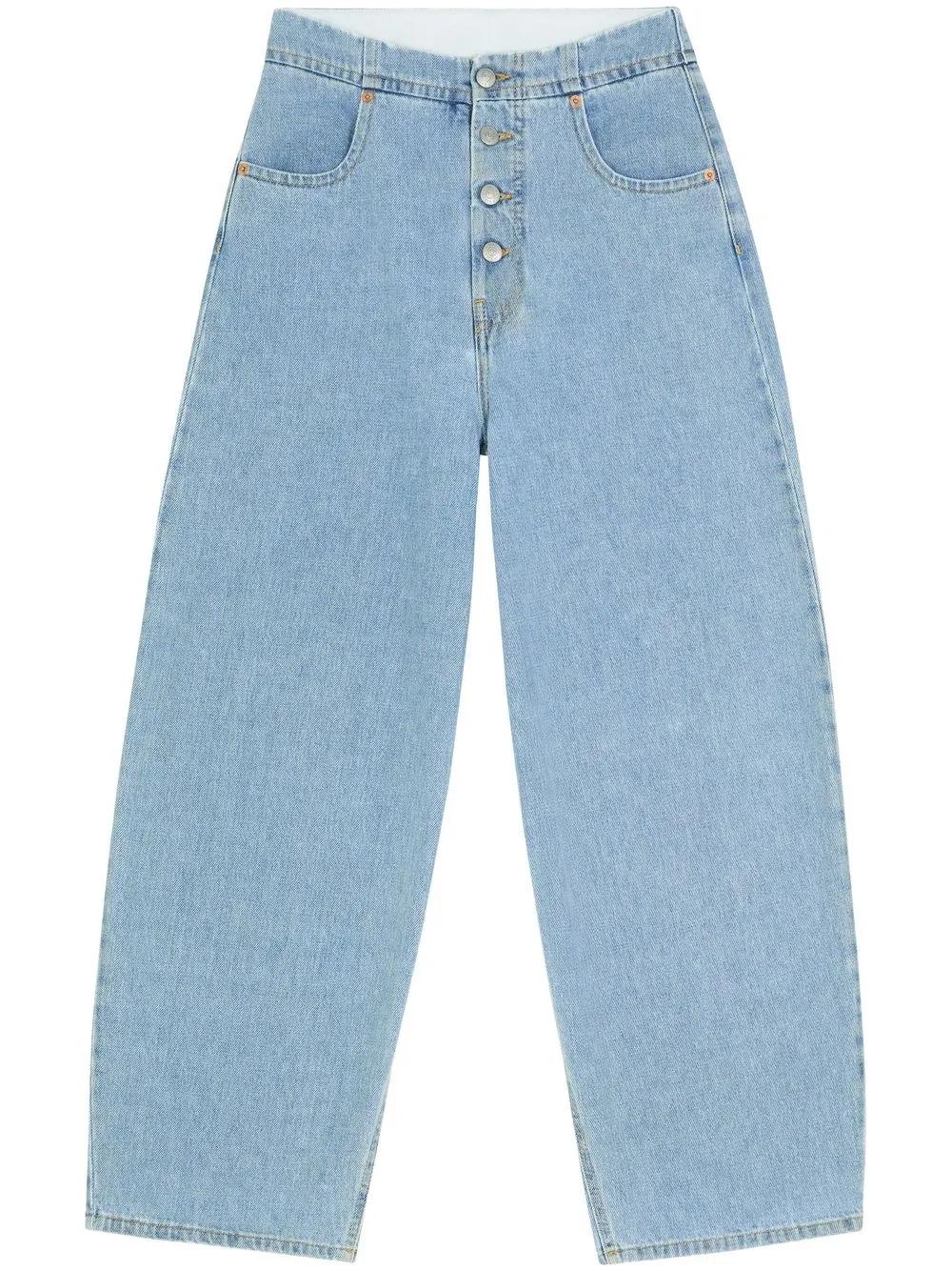straight-leg cut jeans from MM6 Maison Margiela featuring front button fastening, classic five pockets, light blue, cotton blend and belt loops.