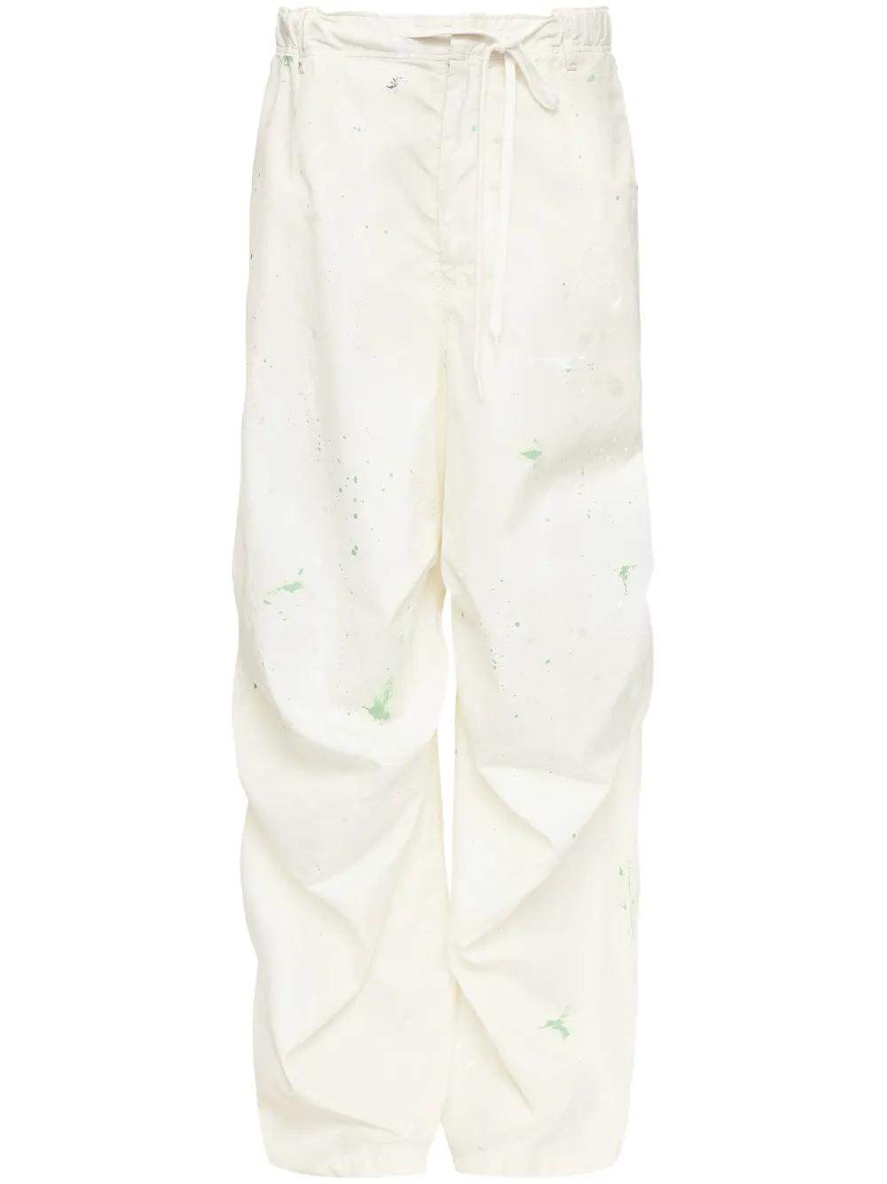 white drawstring fastening waist two side slash pockets two rear patch pockets belt loops