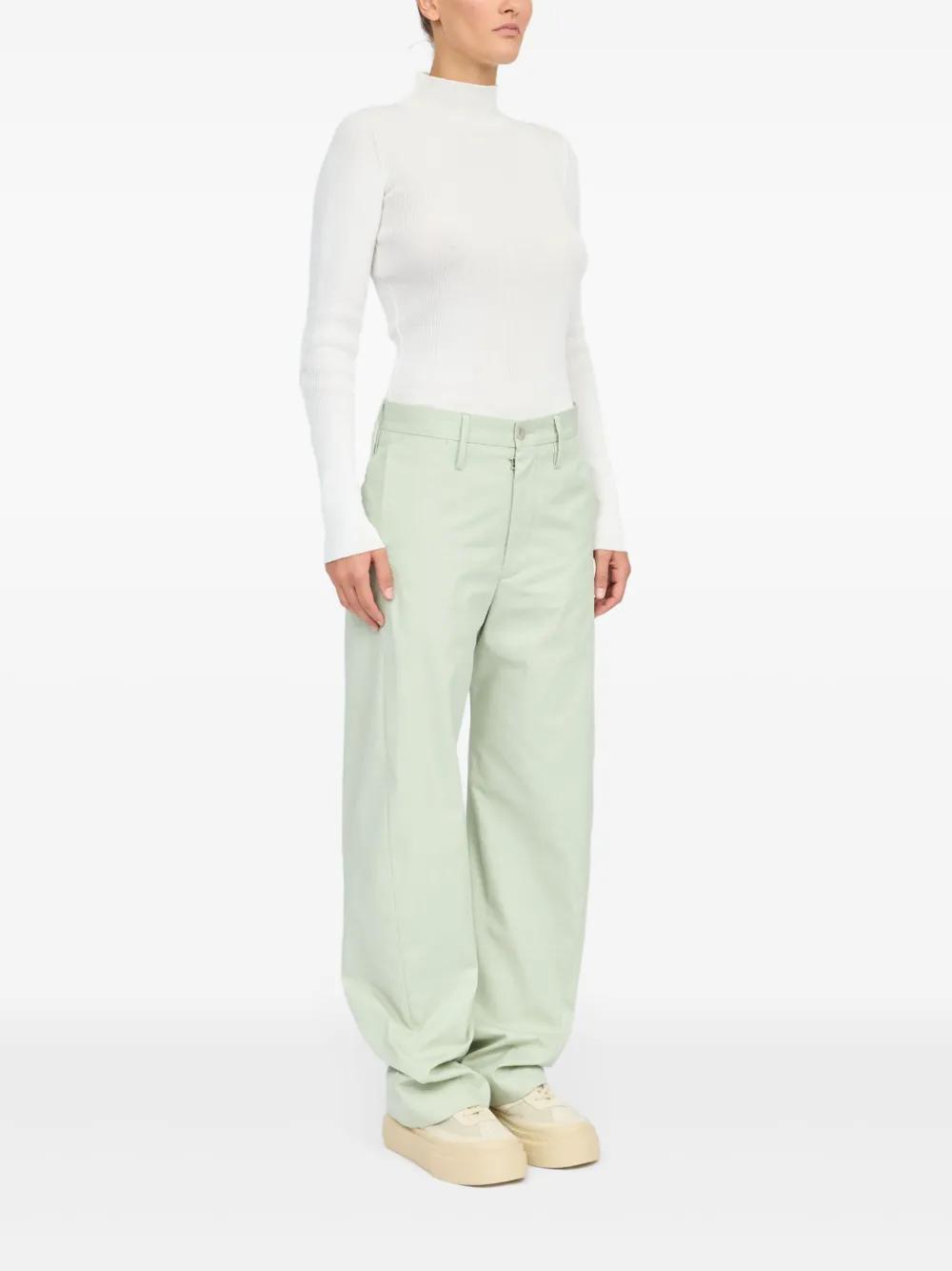 mint green concealed fly and button fastening two side inset pockets rear button-fastening jetted pocket belt loops