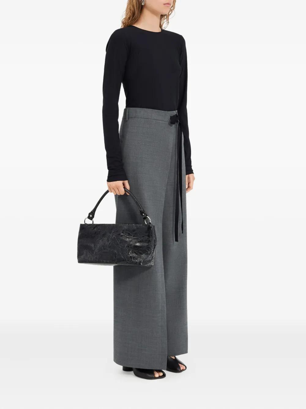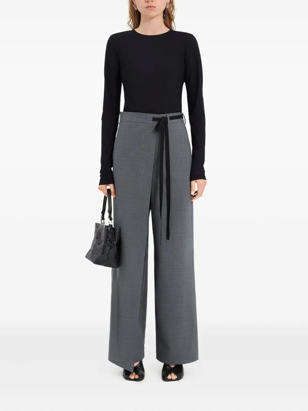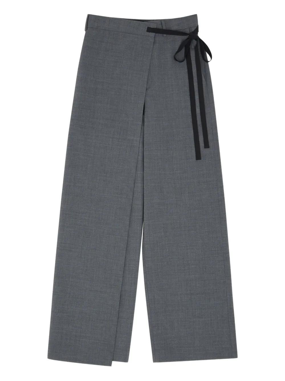 grey wrap detail tie fastening belt loops rear welt pockets wide leg
