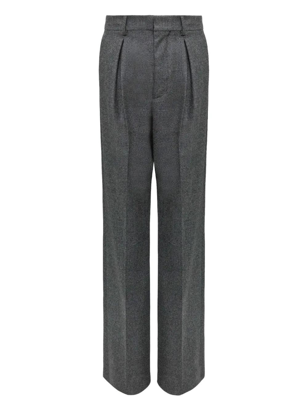 medium grey hook and zip fly fastening two side slit pockets rear button-fastening jetted pocket inverted pleat