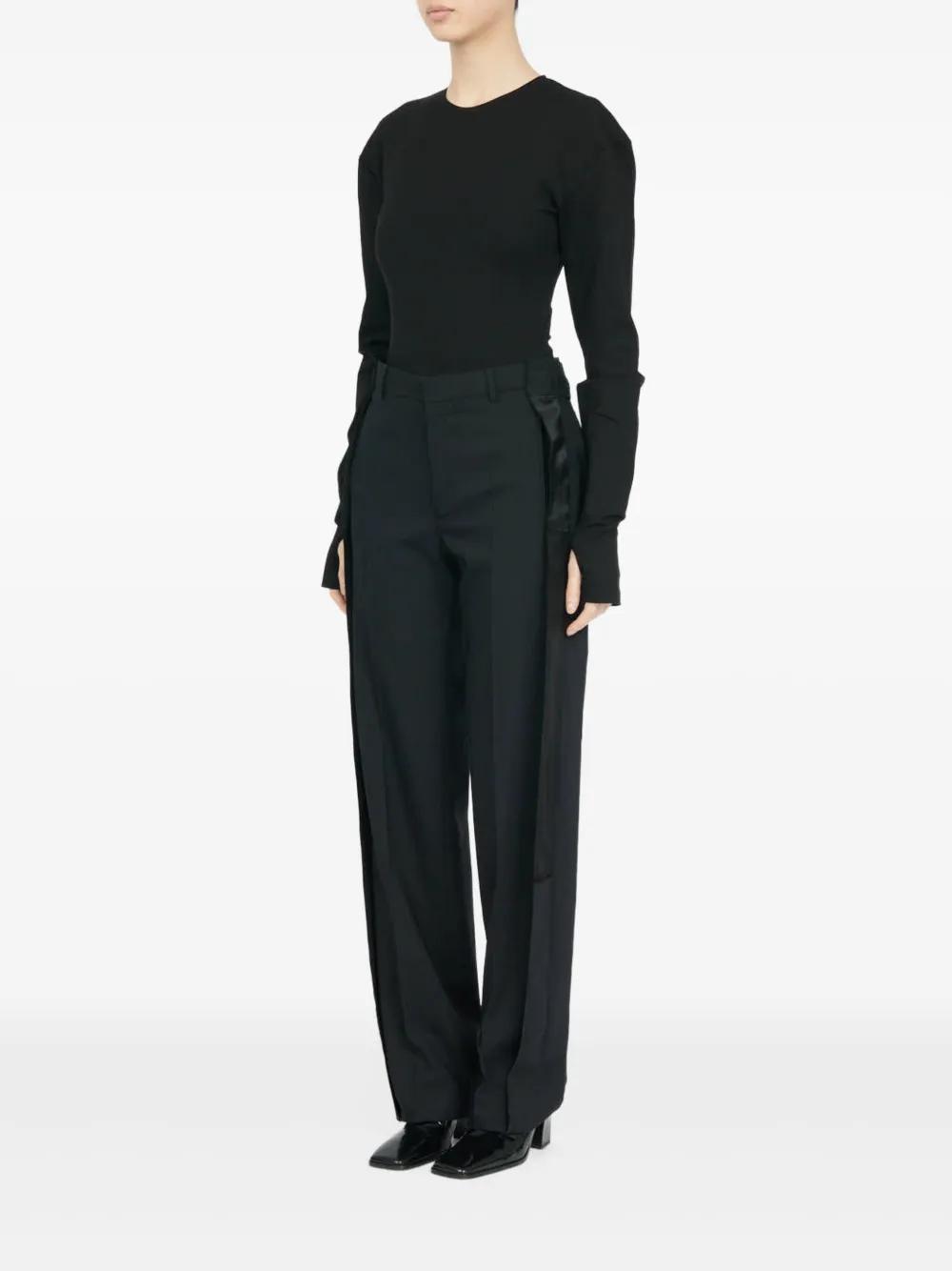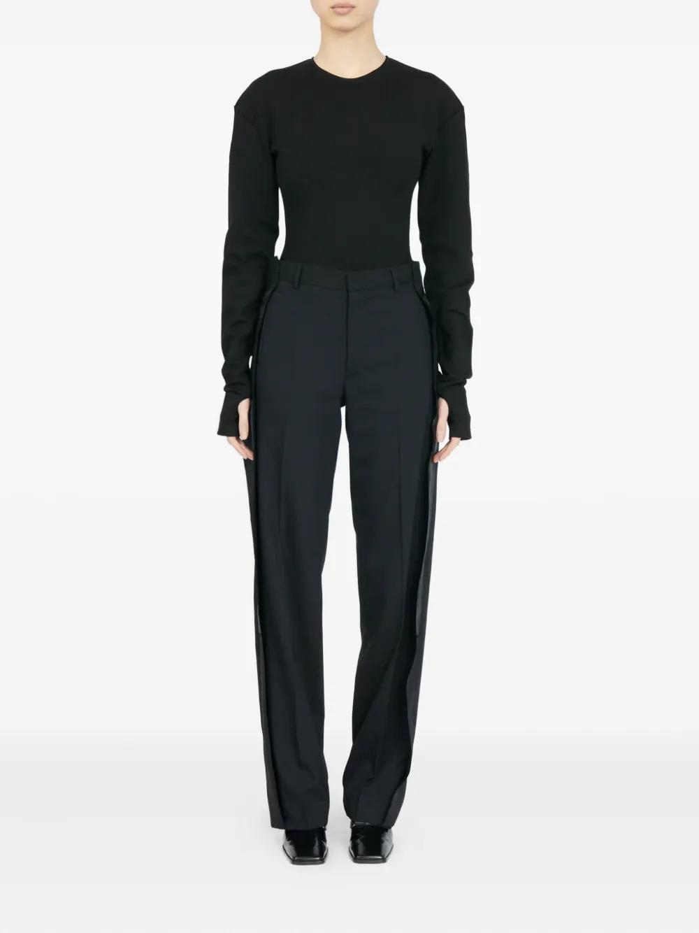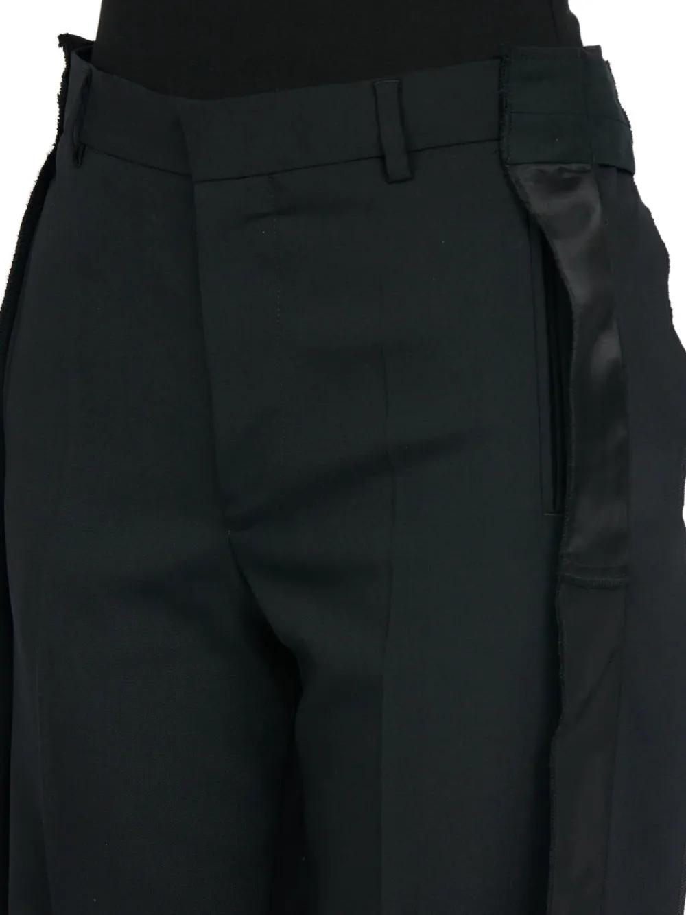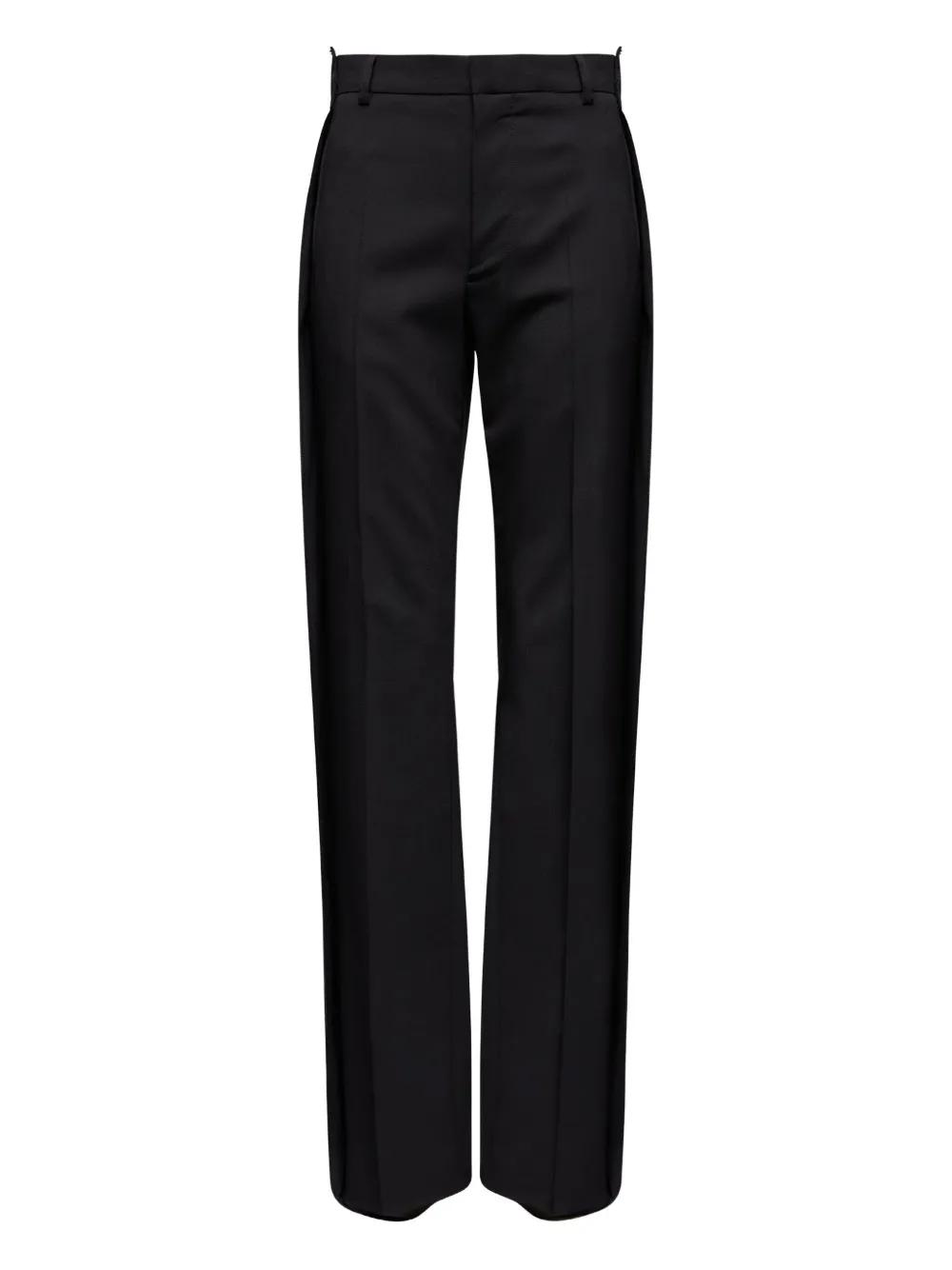 butter yellow wool blend concealed front button, hook and zip fastening two diagonal pockets to the sides two rear welt pockets pressed crease straight leg