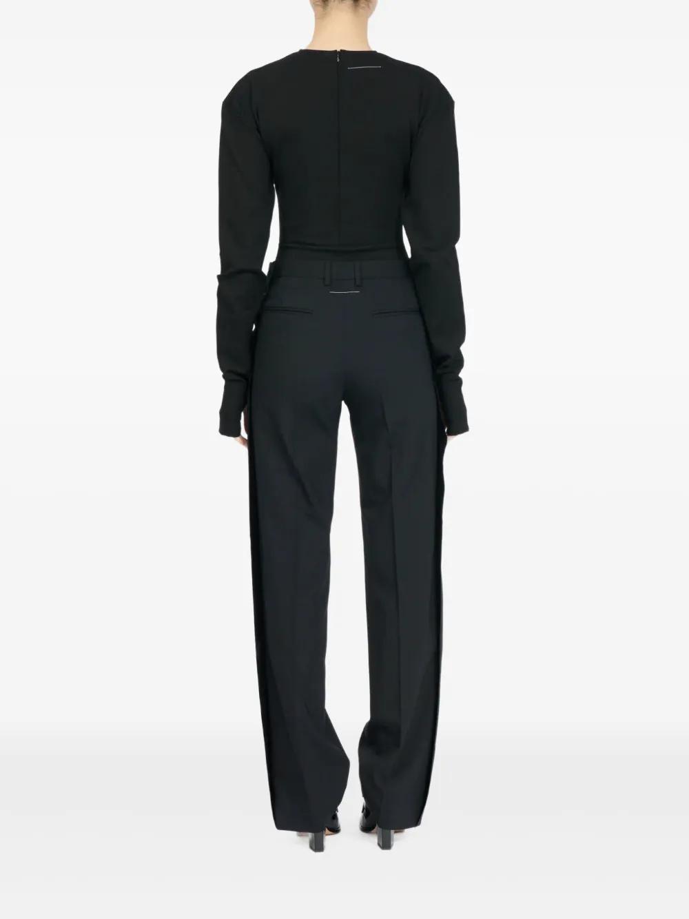 midnight blue cotton exposed-seam detailing flared elasticated waistband straight hem