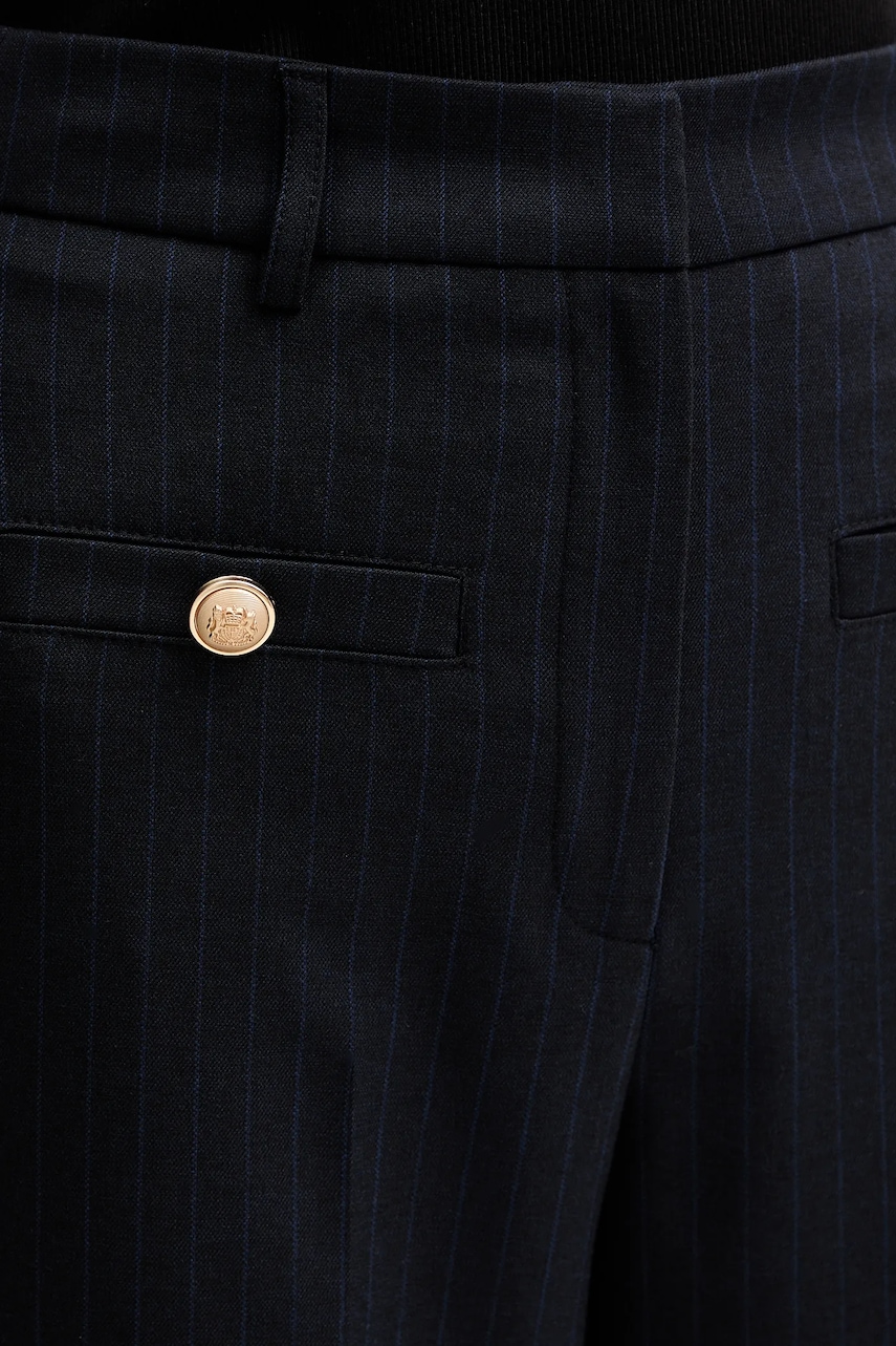 - Prosty, nie blokujący ruchów fason. - Nogawka zaprasowana w kantkę. - Model z podwyższoną talią z zapięciem na suwak i haftkę. - Wsuwane kieszenie. - Cienka, lekko elastyczna tkanina. - Szerokość w pasie: 34 cm. - Szerokość w biodrach: 55 cm. - Wysokość stanu: 33 cm. - Szerokość nogawki na dole: 24 cm. - Szerokość nogawki: 32 cm. - Długość wewnętrzna nogawki: 80 cm. - Wymiary podane dla rozmiaru: 36.