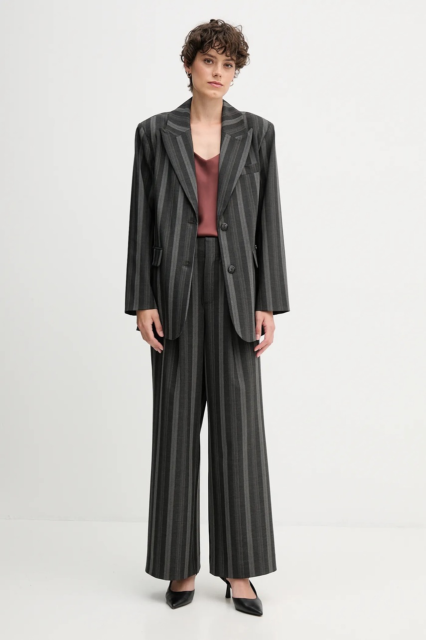 Mos Mosh spodnie EVINE damskie kolor szary szerokie high waist 173851