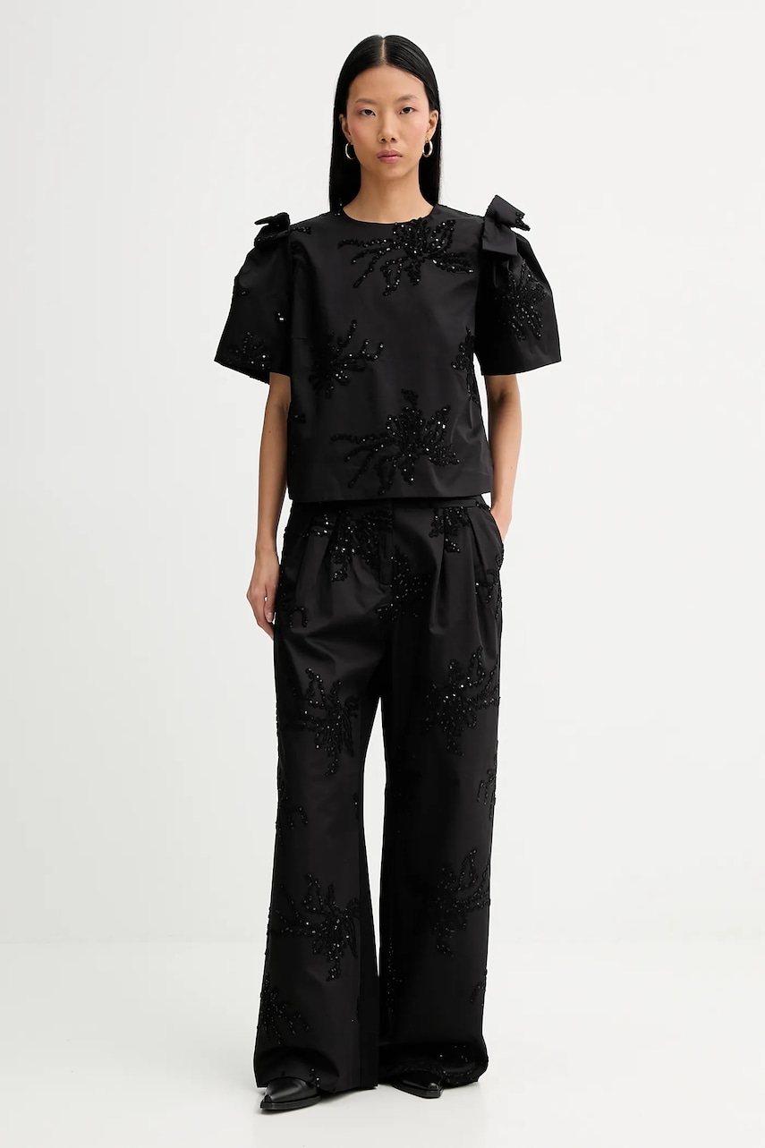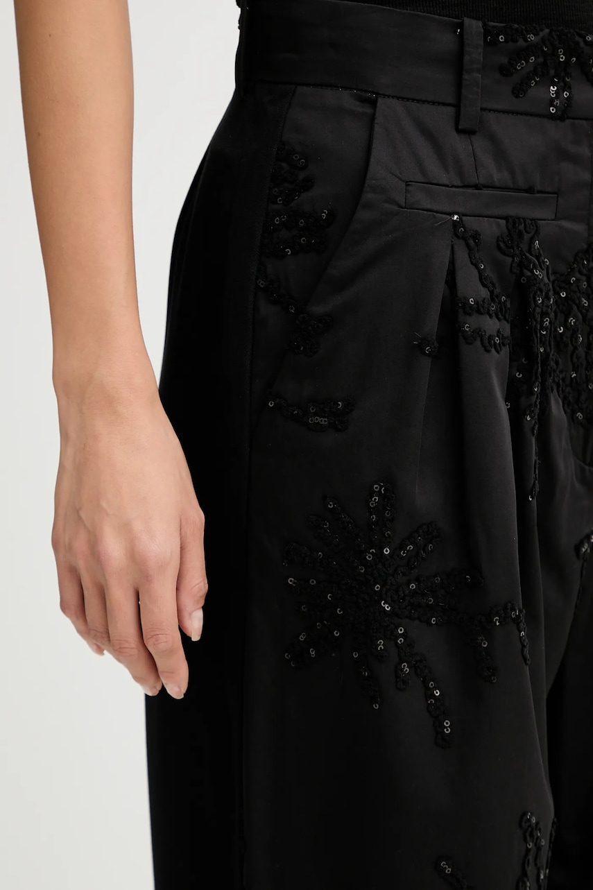 MUNTHE spodnie STORMY damskie kolor czarny szerokie high waist 254144025401