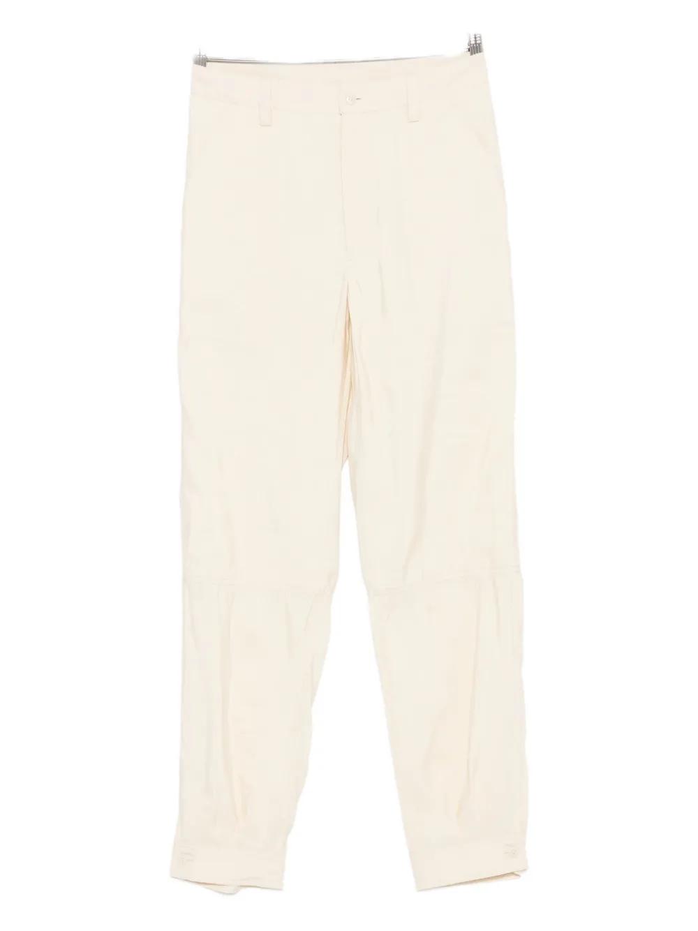 oat beige side pockets button fastening buttoned ankles