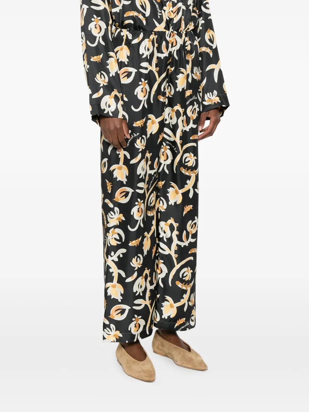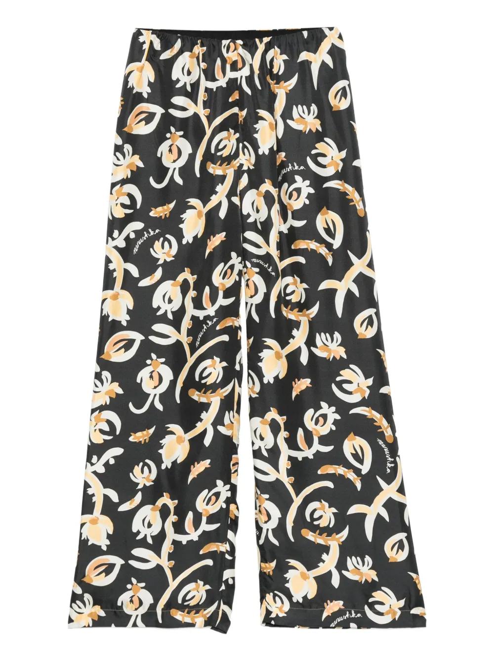 Nanushka elastic-waist floral-print straight trousers - Black