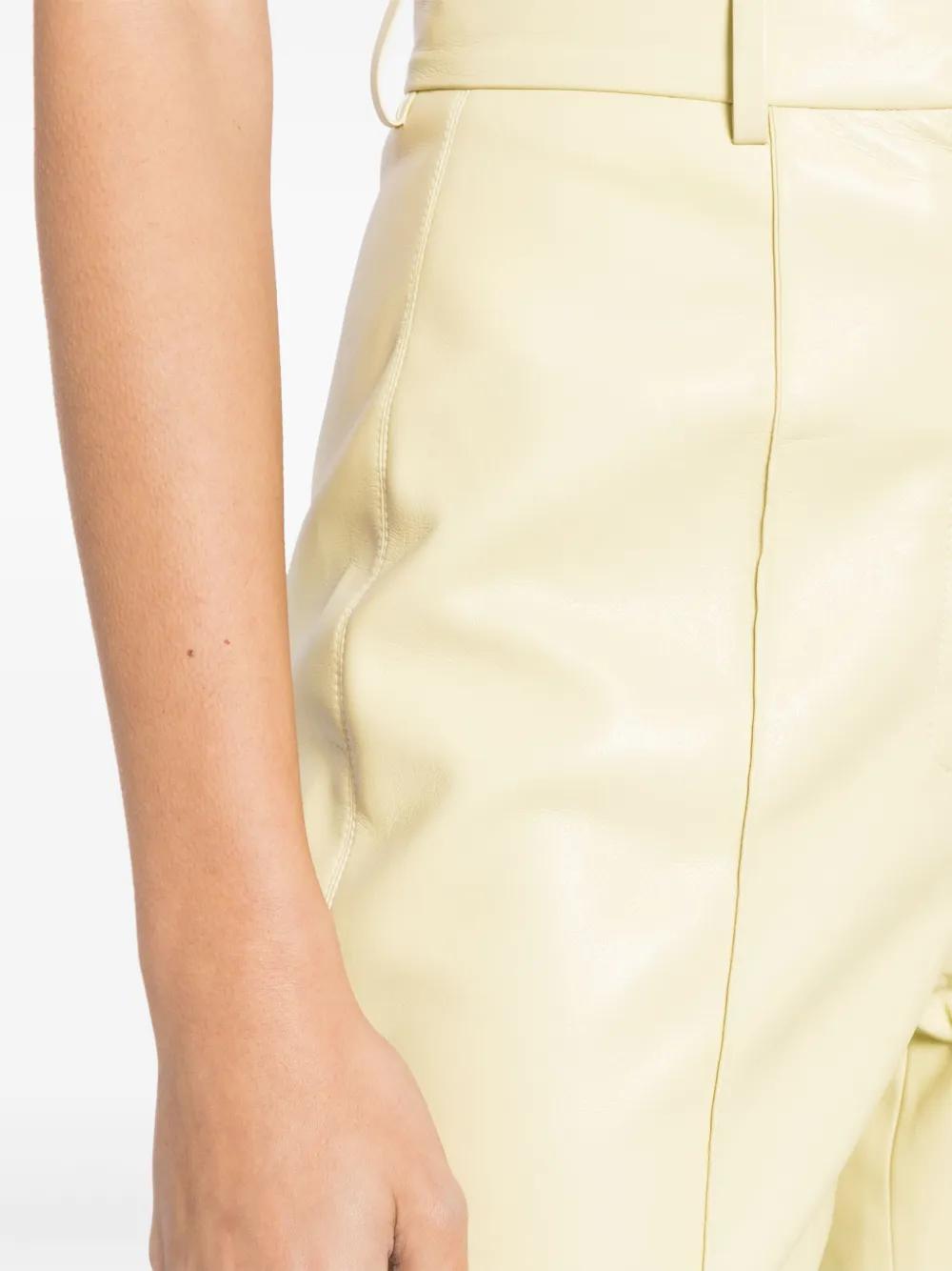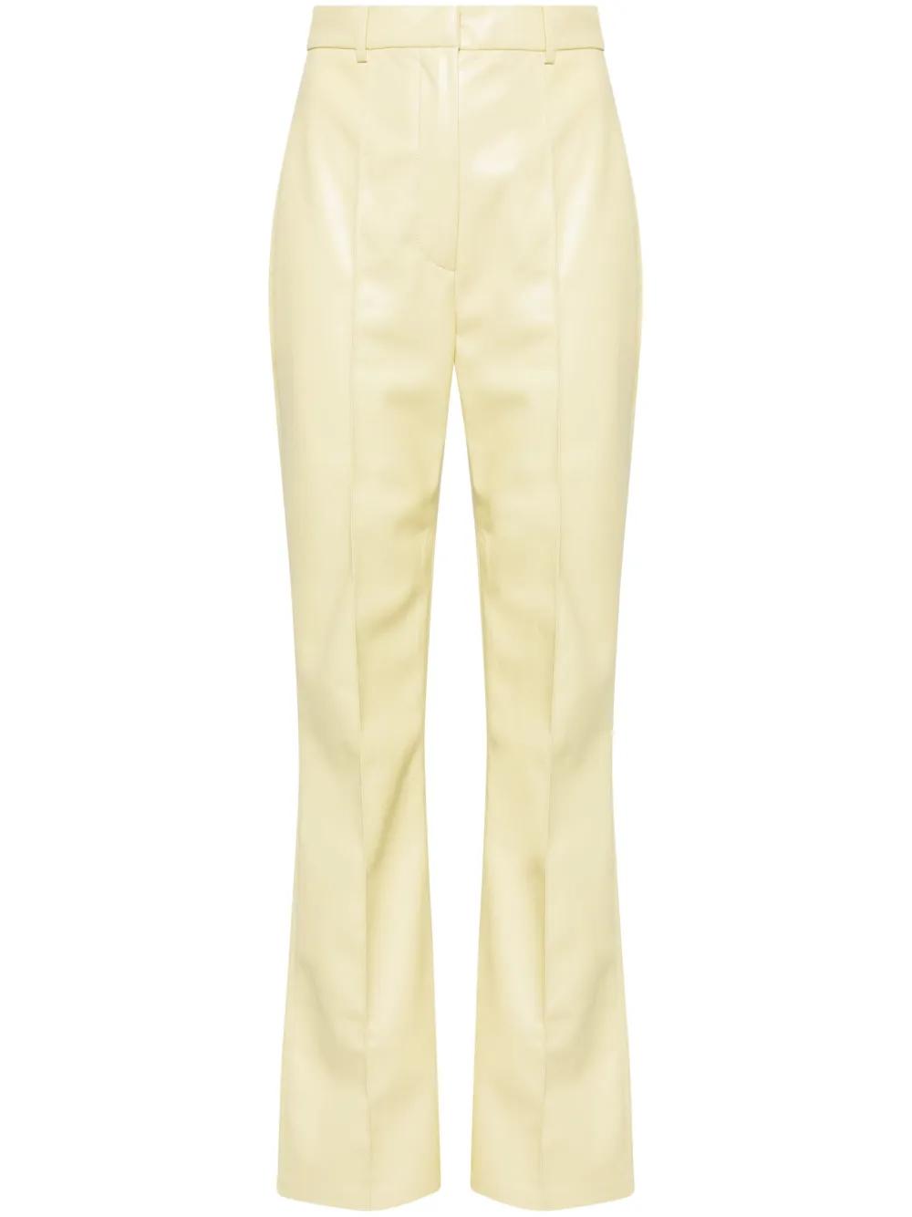 lemon yellow recycled polyester high waist belt loops concealed front fastening two side slit pockets flared
