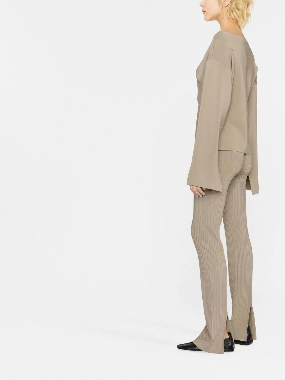 Nanushka slit-front ribbed slim trousers - Neutrals