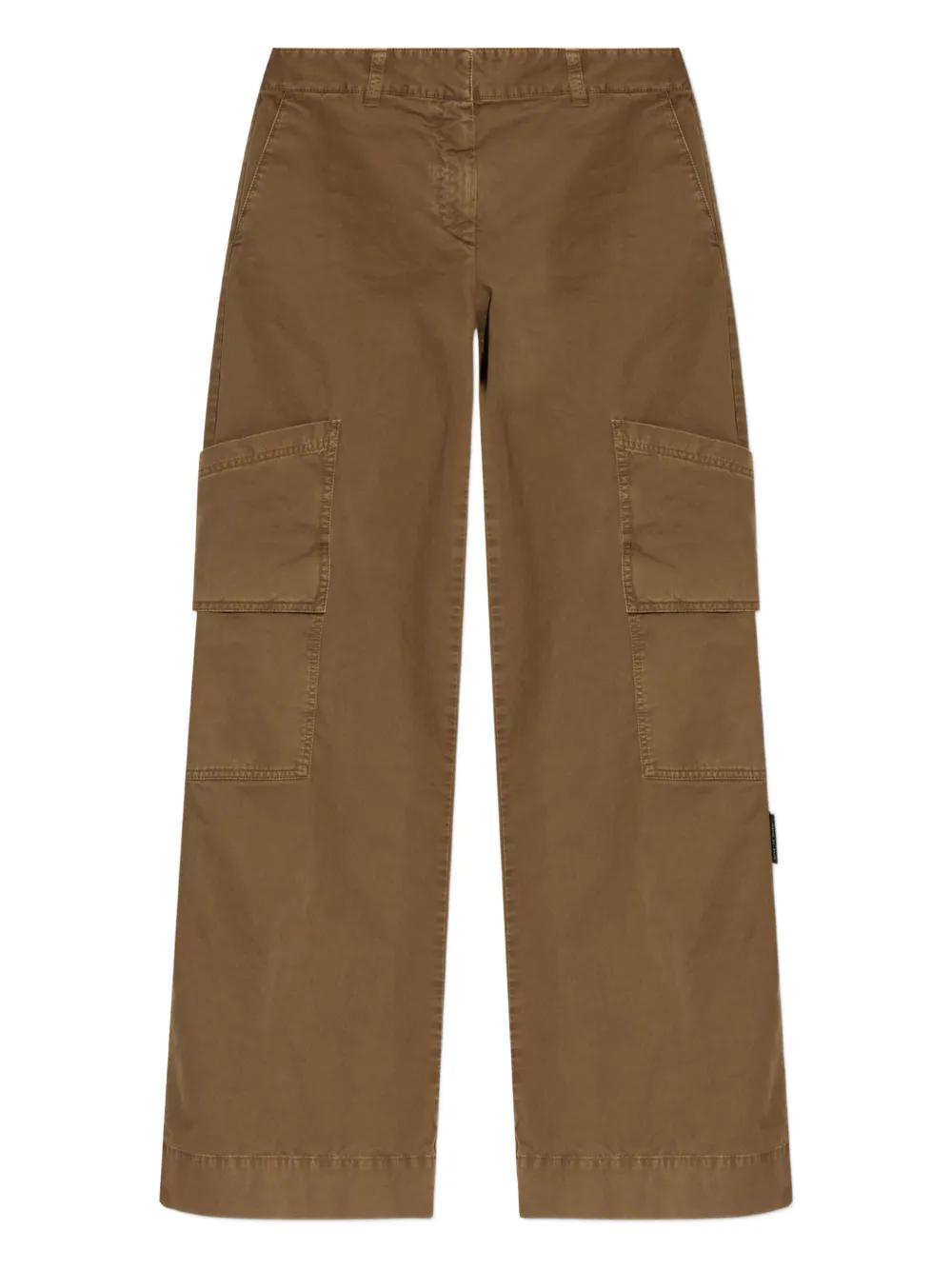 dark purple/burgundy cotton garment dyed front button and zip fastening belt loops classic five pockets multiple cargo pockets logo patch to the rear belted cuffs straight leg