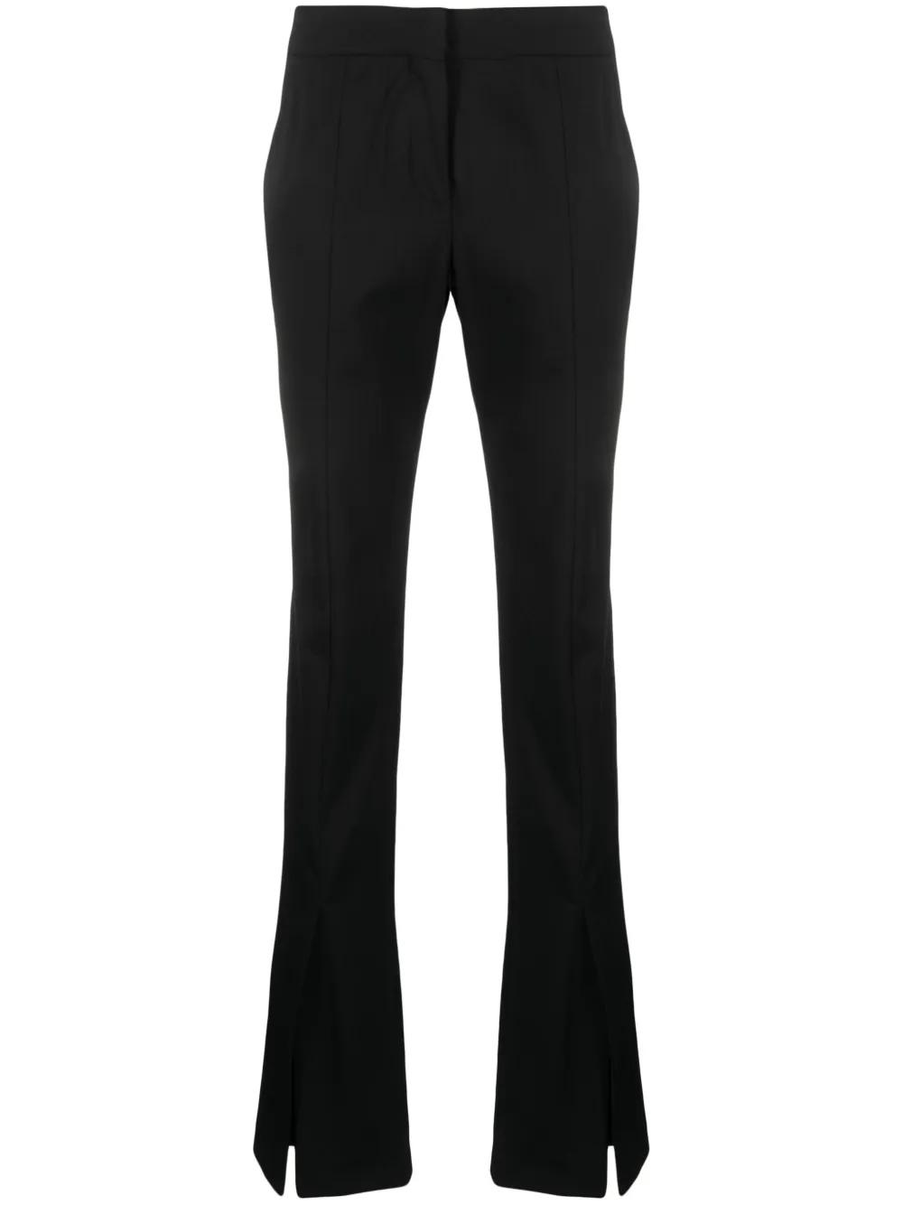 black stretch-wool seam detailing concealed front fastening side pouch pockets split hem straight leg