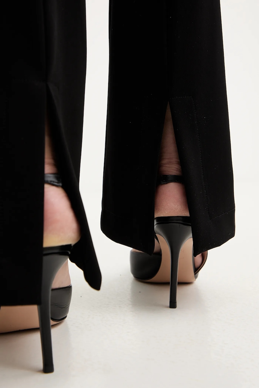 Pinko spodnie damskie kolor czarny dzwony high waist 106093 A04I