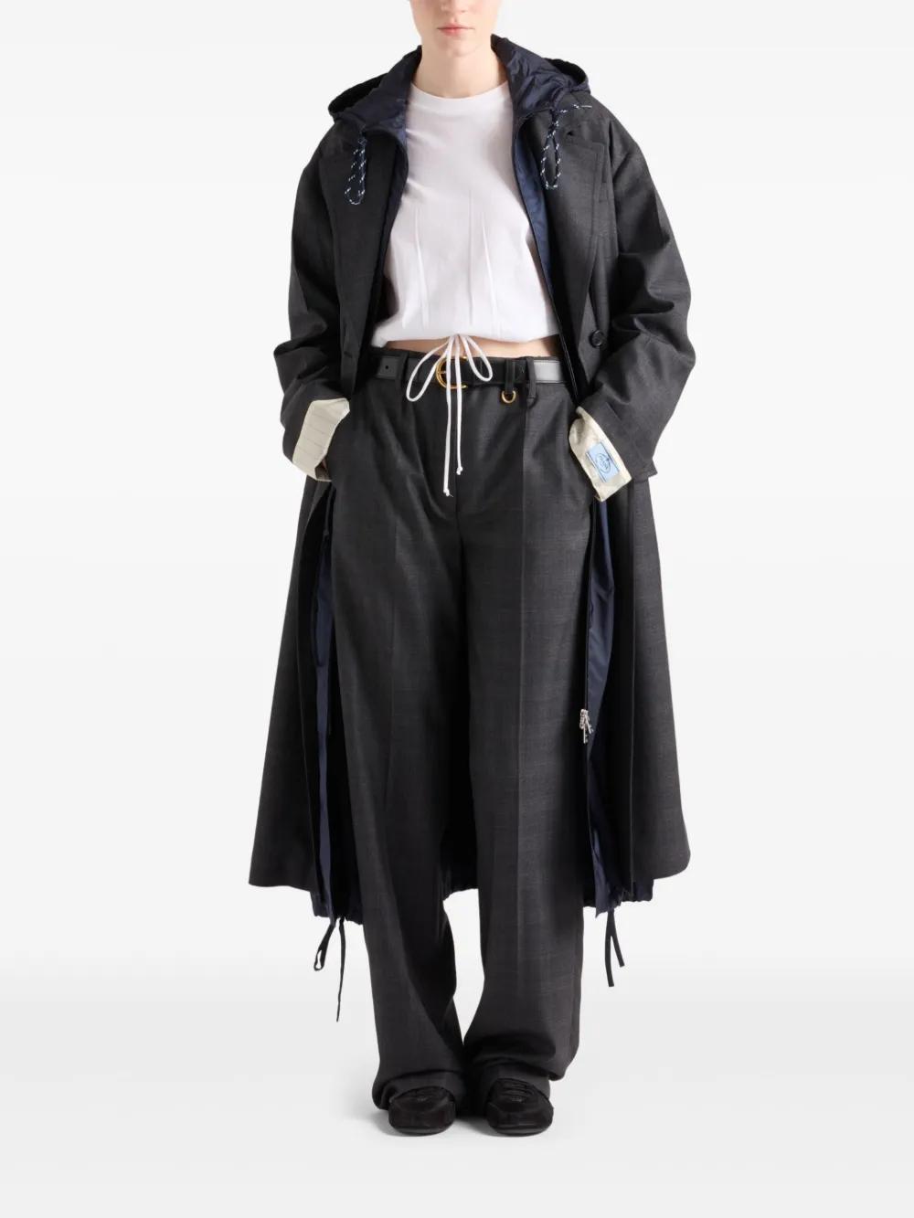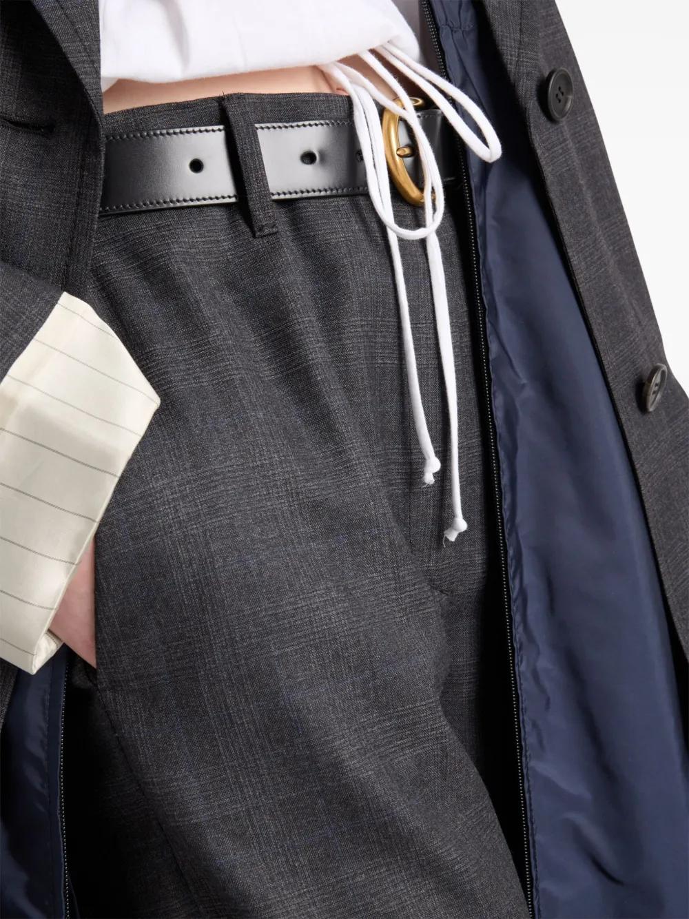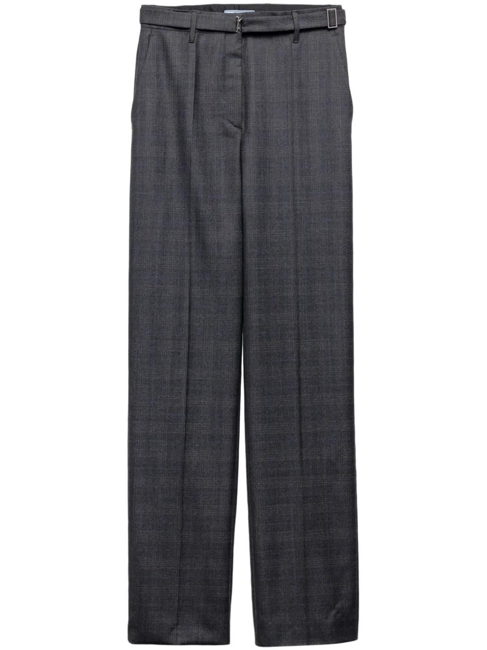 medium grey concealed front fastening belt loops two diagonal pockets to the sides two rear button-fastening jetted pockets