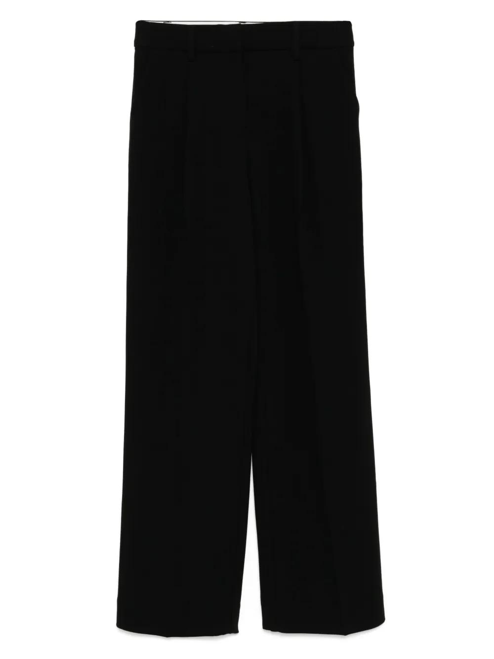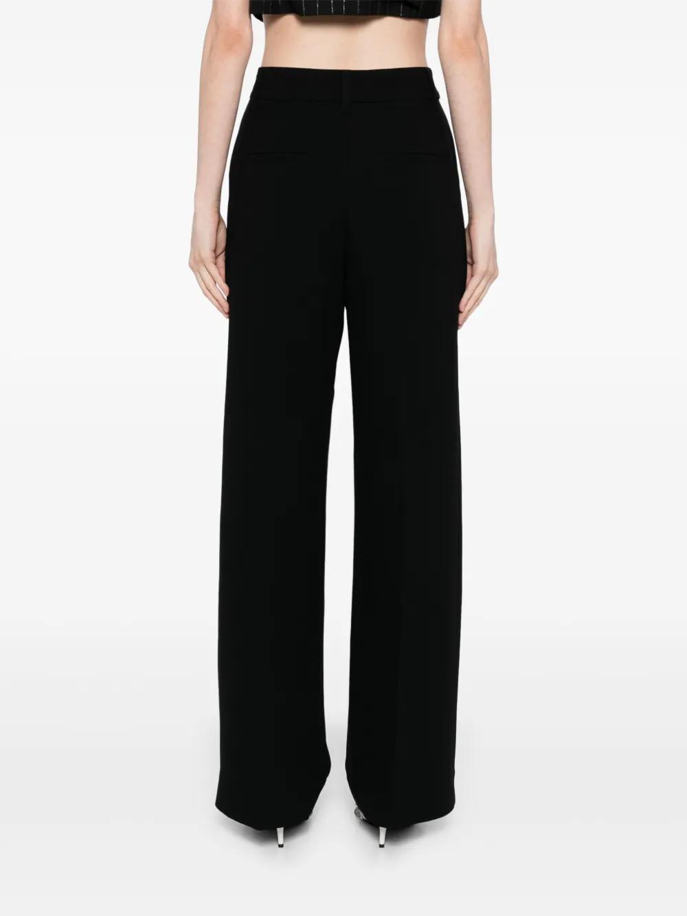 black concealed front button, hook and zip fastening belt loops two side inset pockets two rear welt pockets