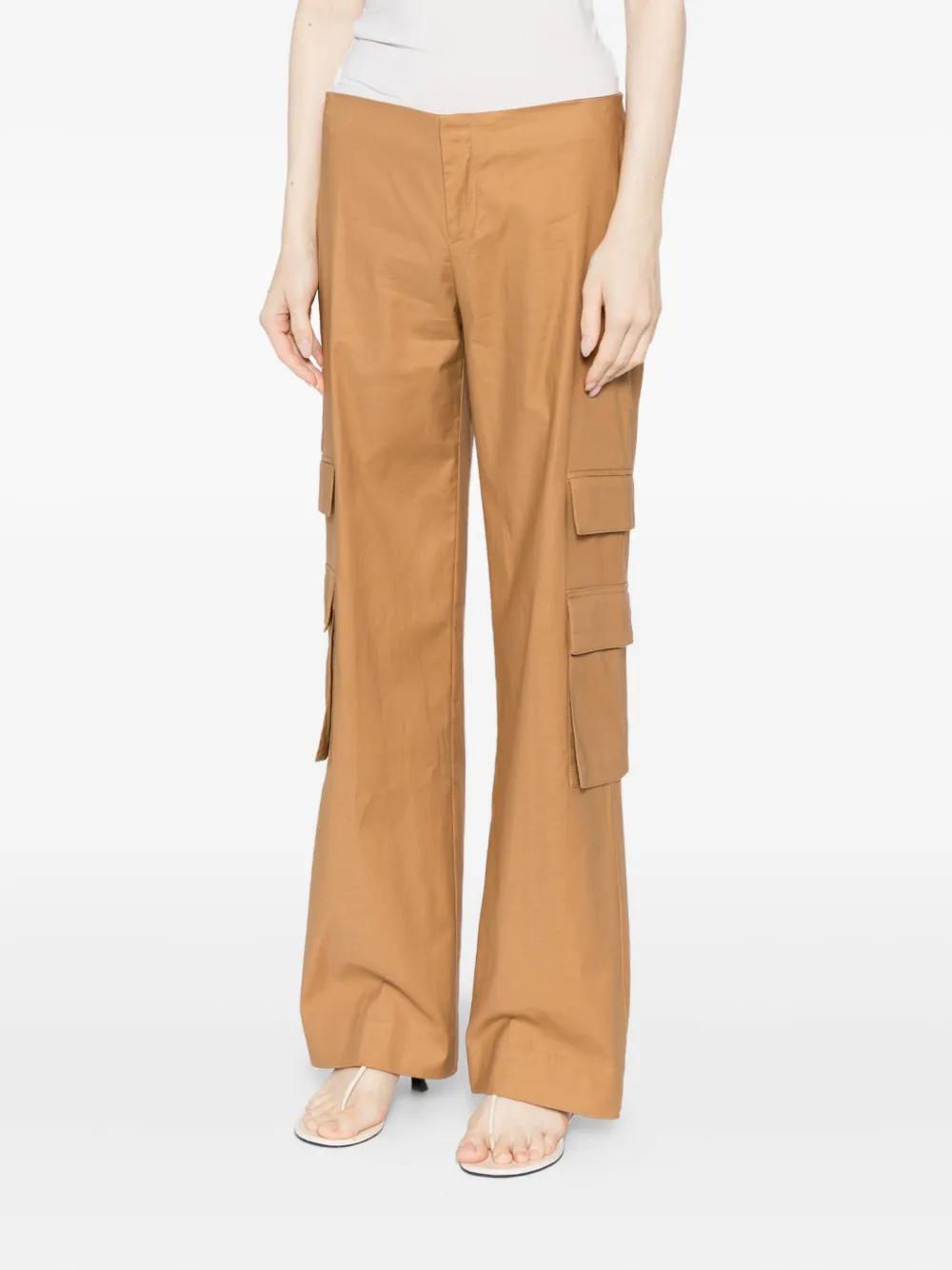 Cognac brown concealed front button, hook and zip fastening two side cargo pockets two rear welt pockets